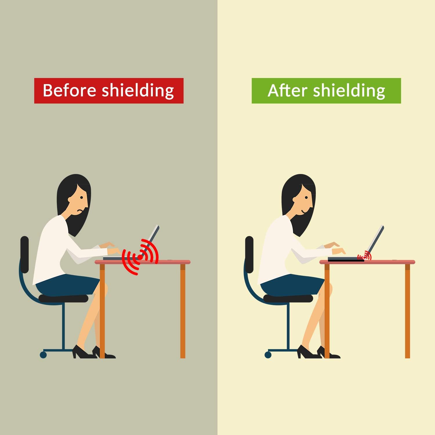 - 4.WHY THIS PARTICULAR PAD: Independent test shows a 92% EMI Reduction. This laptop desk is the perfect size to use at home or on the go .This EMI blocker is guaranteed for a 5-year period of shielding. We guaranteed to ensure Premium Quality, and our unique design make it one of the most powerful protection to take your worries away