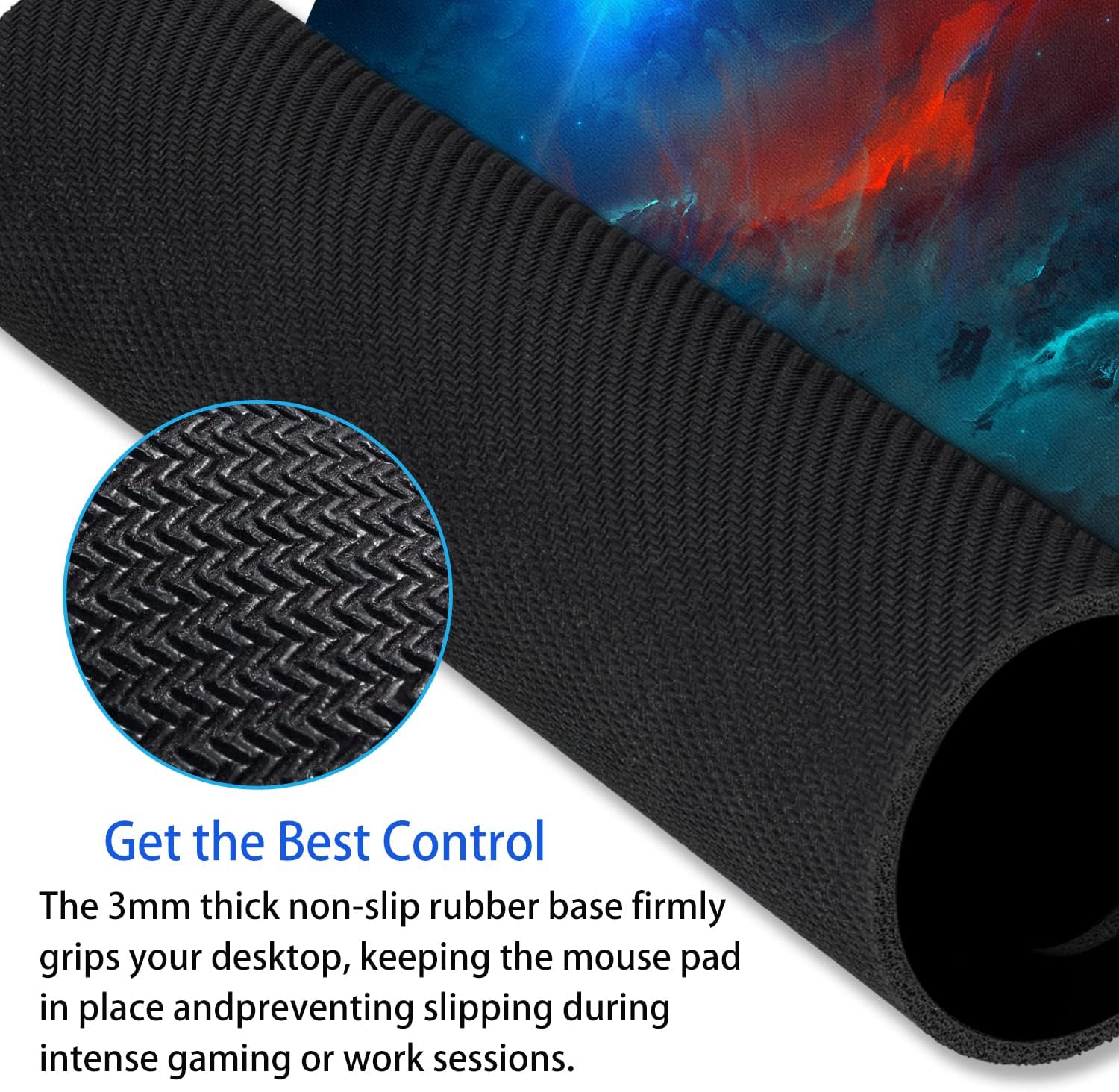 - Non-Slip Base: The non-slip rubber base firmly grips your desktop, keeping the mouse pad in place and preventing slipping during intense gaming or work sessions.