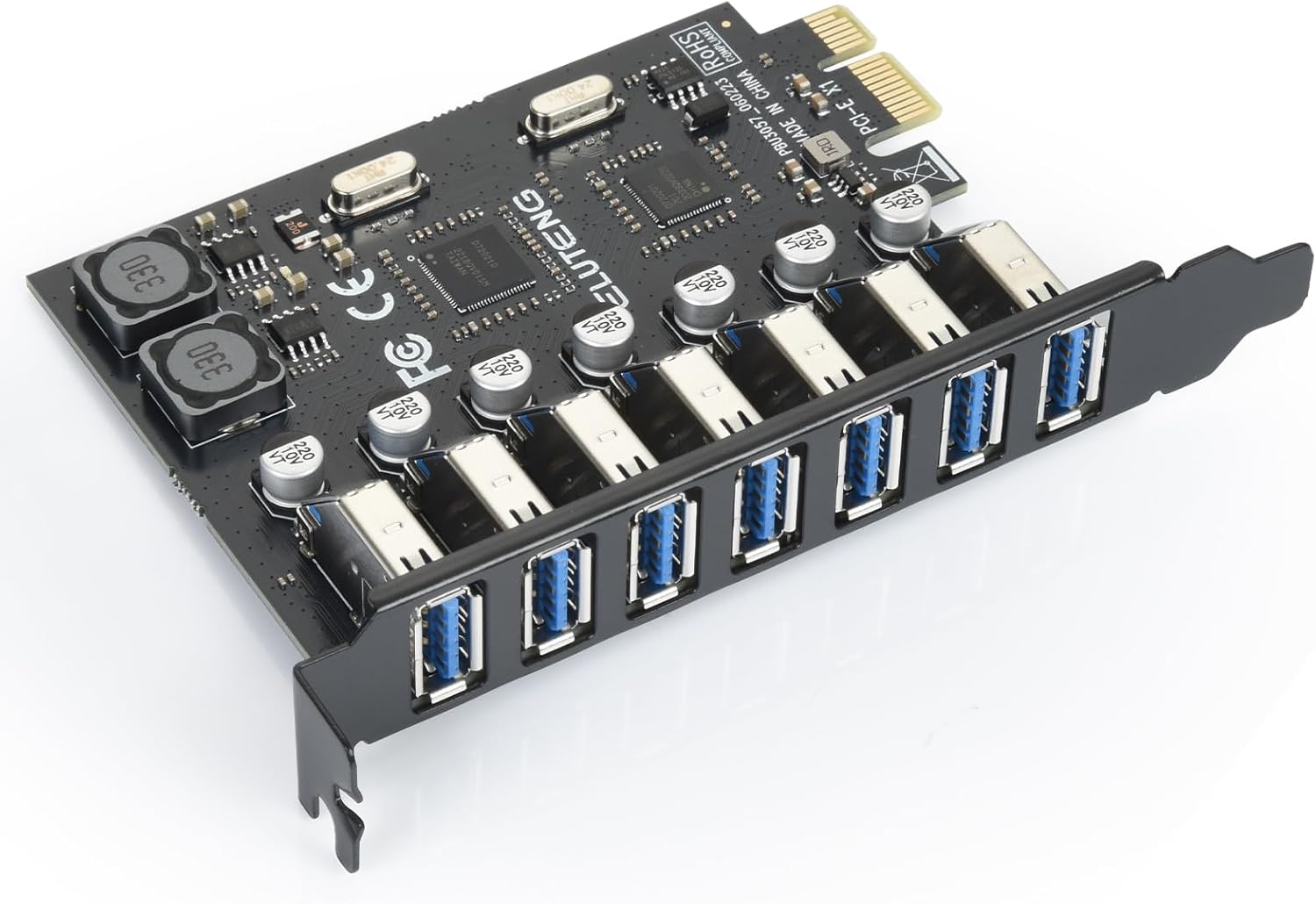 ELUTENG PCIE USB 3.0 Card 7 Ports PCI Expree to USB Expansion Card Super Speed 5Gbps PCI-e USB3 Hub Controller Adapter for Windows 11/10/8/7/XP/Vista