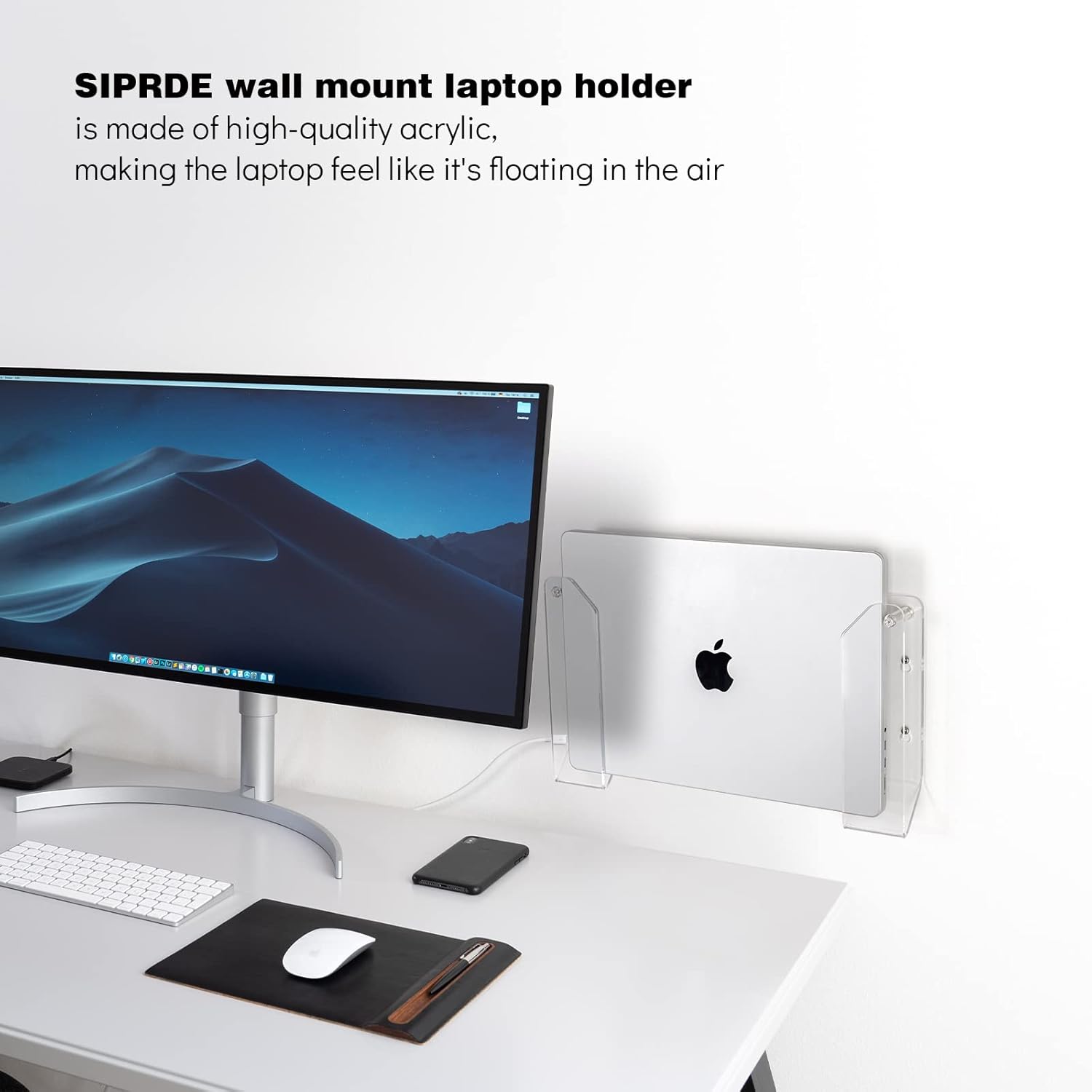 - 【100% CLEAR】The wall mount laptop holder is made of high-quality clear acrylic plastic, the installation is cleaner and more discreet than engineering plastic - it's like your laptop floating in mid-air.