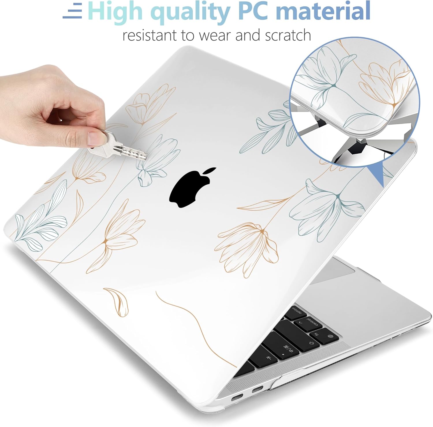 - Design Features of Case: The bottom case is designed with vents for maximum heat dissipation. The bottom case has non-slip feet to avoid slipping during use. The precise cutting design allows you to access all the ports of your MacBook. For Macbook air 2020 case is easy to install and remove