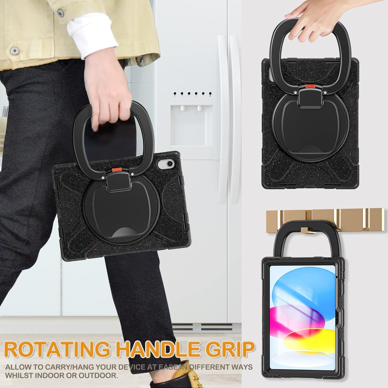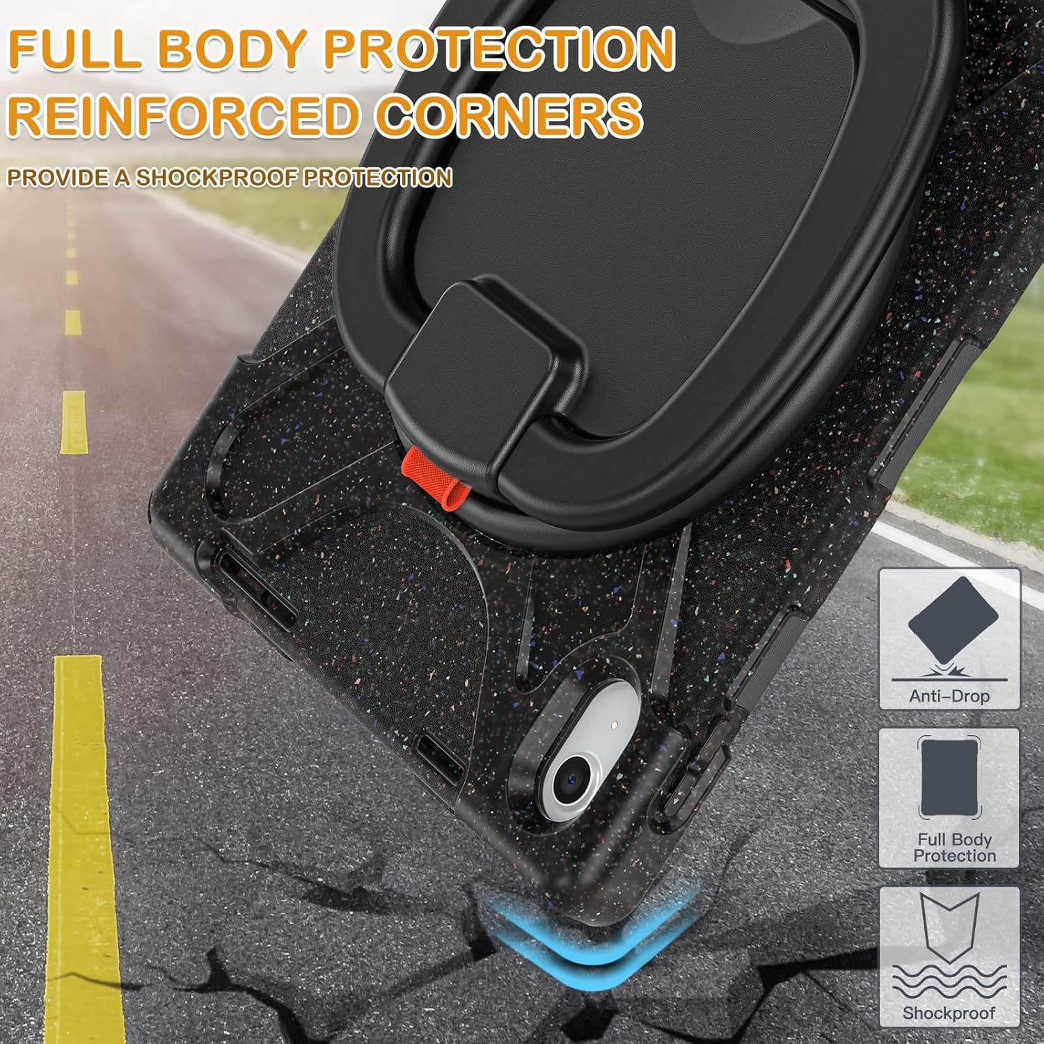 BRAECN Case for iPad (A16) 11th/10th Generation 11”/10.9'' 2025/2022-Heavy Duty Rugged Silicone Case w/Swivel Ring Stand/Kickstand/Shoulder Strap/Pencil Holder/Screen Protector-Carnival Night (Black)