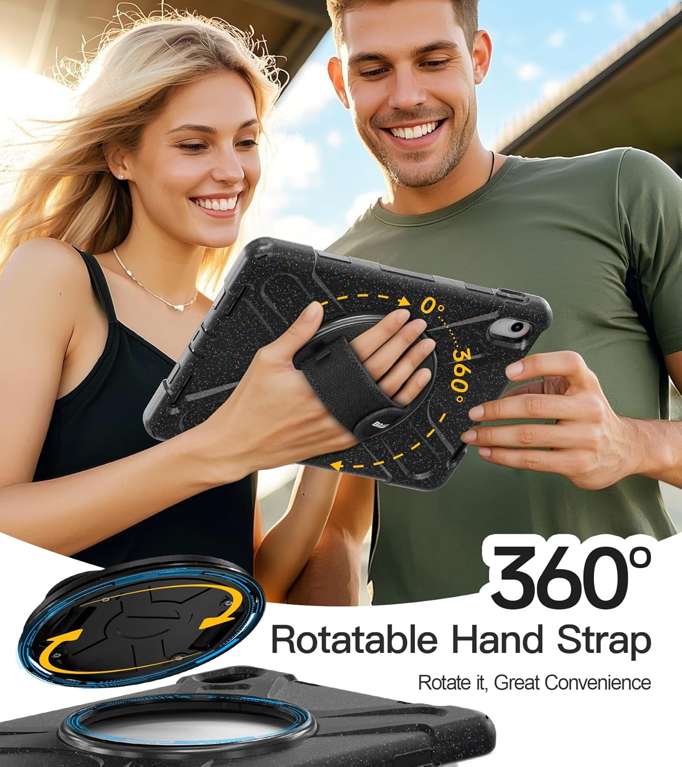 - [360°Rotating Handle/Stand & Shoulder Strap]:This ipad 11/10.9 inch case have a 360° rotation system that includes a kickstand and a hand strap, by rotating it, you can hold your ipad at any angle, by utilizing the swivel and the stand, you can support your ipad at multiple angles.The adjustable shoulder strap allows you to carry or hang your iPad at any time, so that you can provide more convenience in outdoor sports, traveling.
