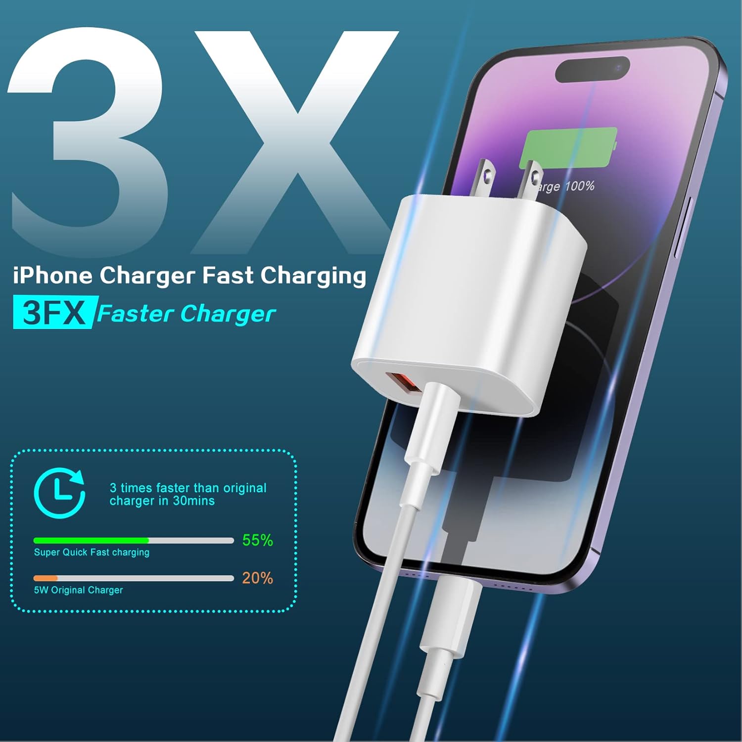 - 【6FT iPhone Charger USB C to Lightning Cable】 The Dual Port A/C iPhone Wall Charger Adapter With 6FT USB C to Lightning Cable Cord,With the Original Chip,the USB C to Lightning Cable Cord Equips Automatic Chip Recognition Function,Full Support With iOS Versions.Supports PD 3.0 Fast Charging Speed Max Up to 3A,also Support 480Mbps Sync/Data Transfer Speed,and the 6-Foot length Long Enough to be Convenient to Charge your Device in Bedroom,Sofa,Office.