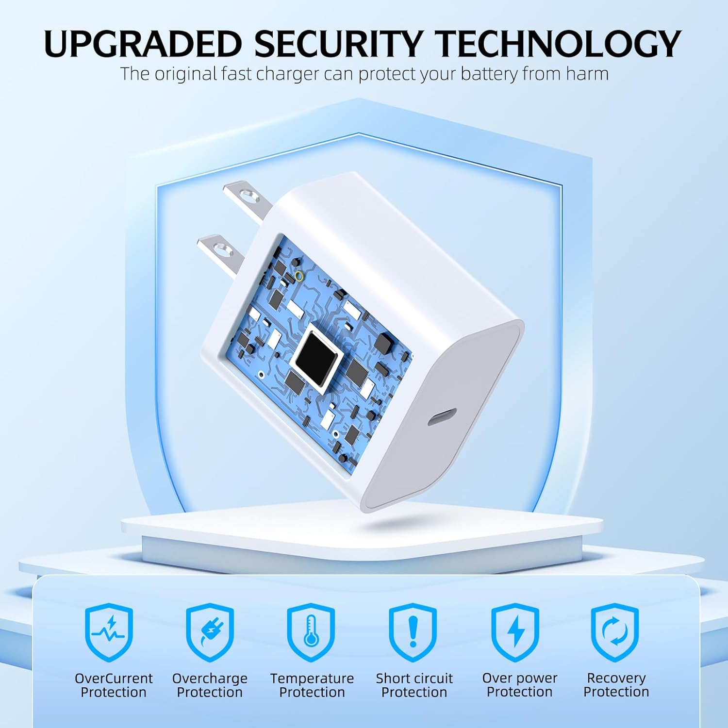 - 【Safety USB C Apple Charger Block and 10FT USB C Cable】 iPhone 16 charger has undergone rigorous safety certifications to ensure reliable and safe charging for your devices. Prioritizes safety with its comprehensive protection system, guarding against over-voltage, over-charge, and over-heating. Equipped with advanced smart chips, it intelligently adjusts the current to match your device's needs, guaranteeing a rapid and secure charging process for your iPhone16/15/iPad Pro.