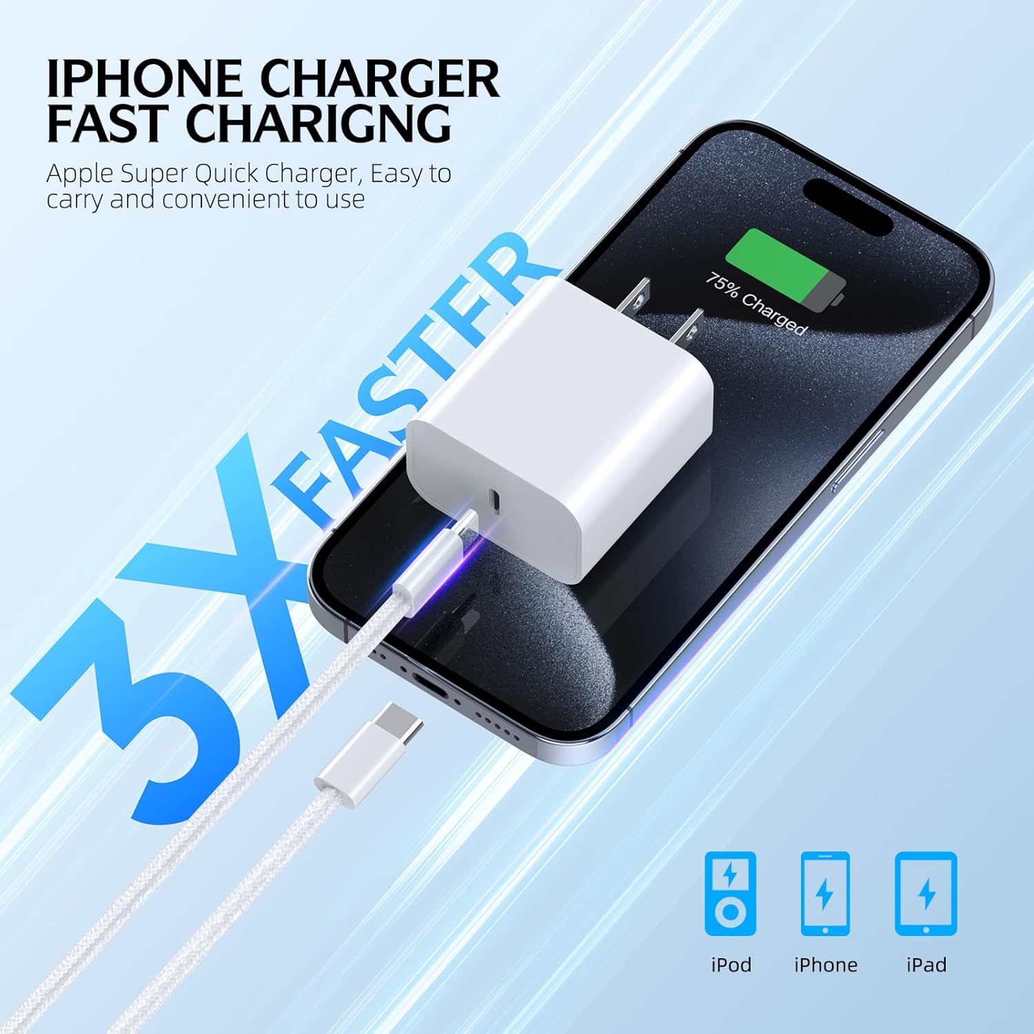 - 【20W Fast Charging Block adapter】The USB C Charger for Apple iPhone 16 Charger with 10 FT Long USB C Cable braided Cord you can experience lightning-fast charging speeds for your iPhone 16 or iPhone 16 Pro from 0% to 60% in 30mins. The advanced technology embedded in our charger allows for efficient power delivery, reducing charging time and maximizing convenience.