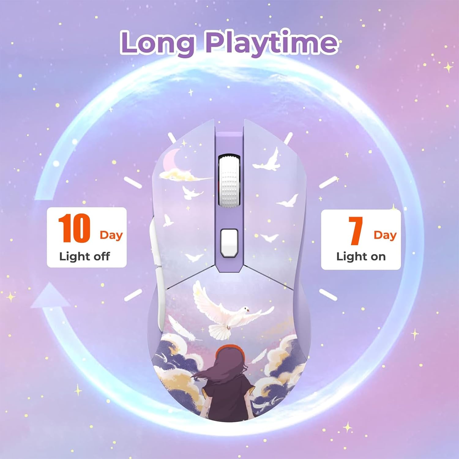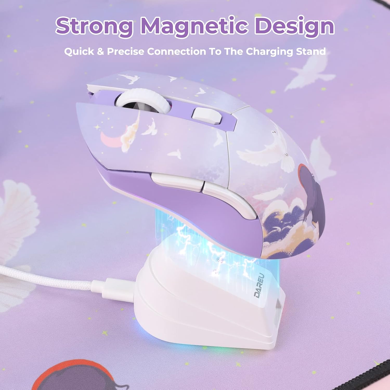 - 【Long-Lasting Gaming or Office Hours】DAREU dream purple mouse is equipped with a long-lasting built-in battery. The battery can be used repeatedly. It's also the smart choice: you will save a lot of money in disposable batteries! Simply place the Sakura Wireless Mouse on the charging dock and your Sakura mouse is always ready to use. Allows you to go all day without worrying about running out of battery.