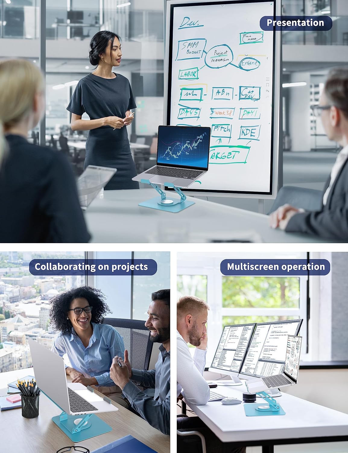 - Collaborate with Ease: The SOUNDANCE laptop stand features a 360° rotatable base, making it easy to share your computer screen with others while collaborating on projects.