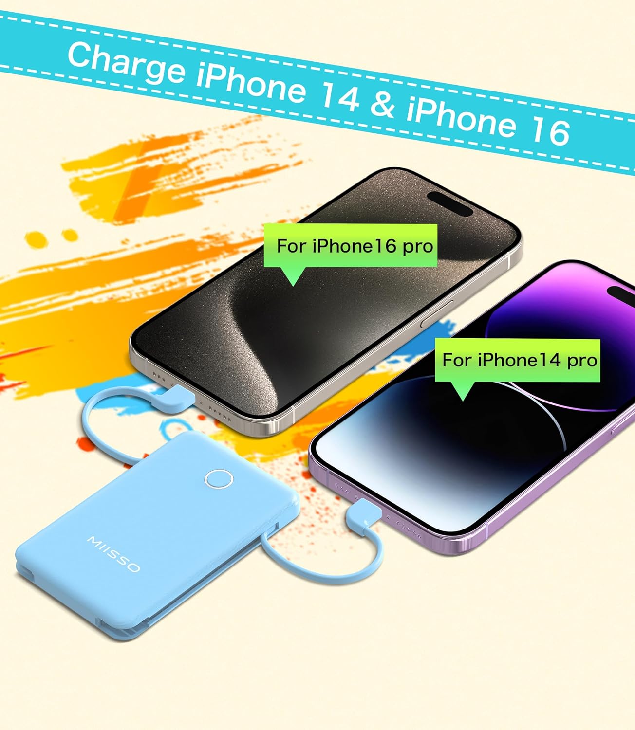 - Credit Card Size: It is the slimmest and the smallest of MIISSO portable chargers with cables, only 0.27lb(122g) and its body like a credit card. The lightweight design lets you take it out without pressure. It's slim enough to put it in your pocket or in your handbag