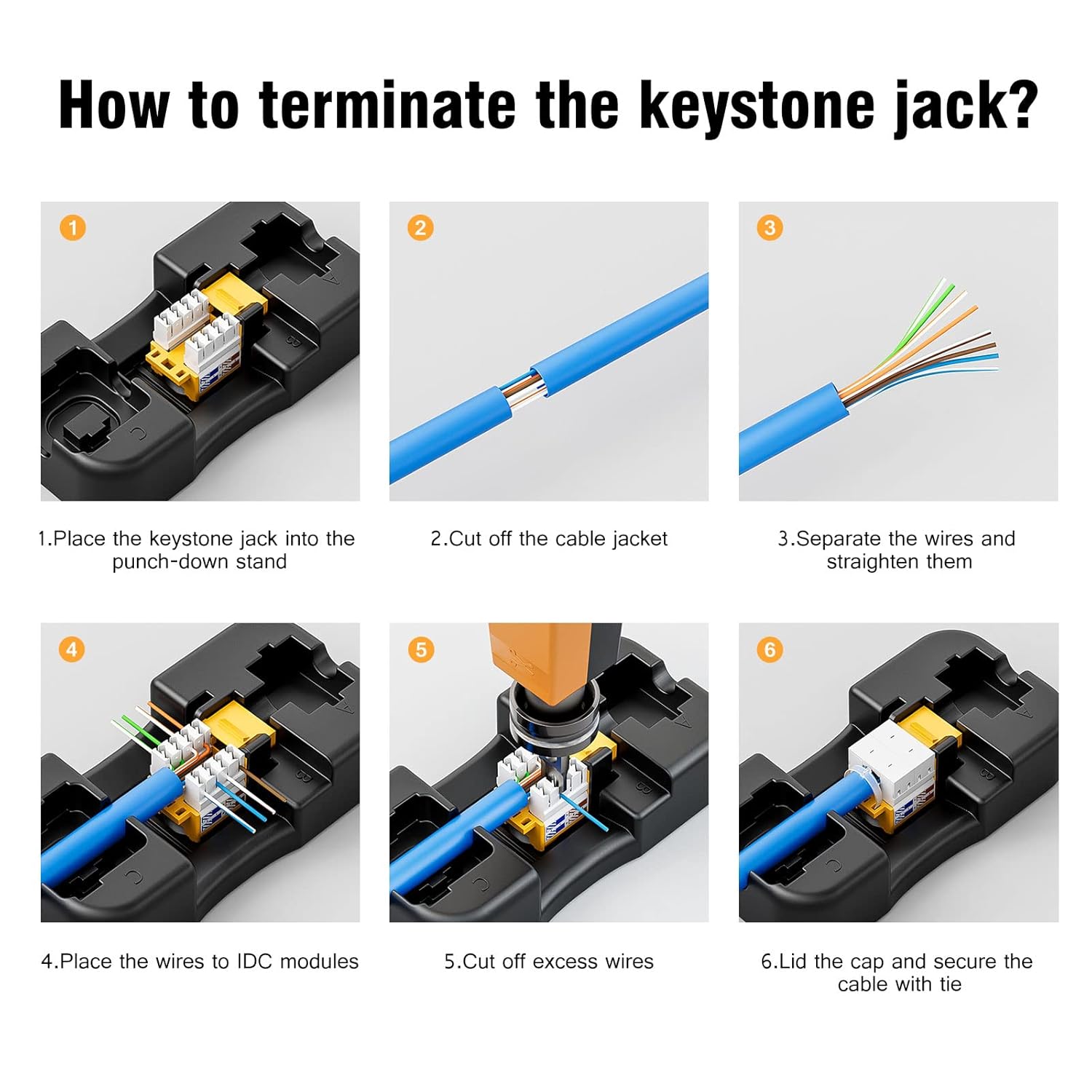 - Multi-Scense Application: keystone jack modules accommodate most 23 and 24 AWG ethernet cables. Support T568A and T568B wiring standards. Widely used in home, company, surveillance, engineering and other network cabling
