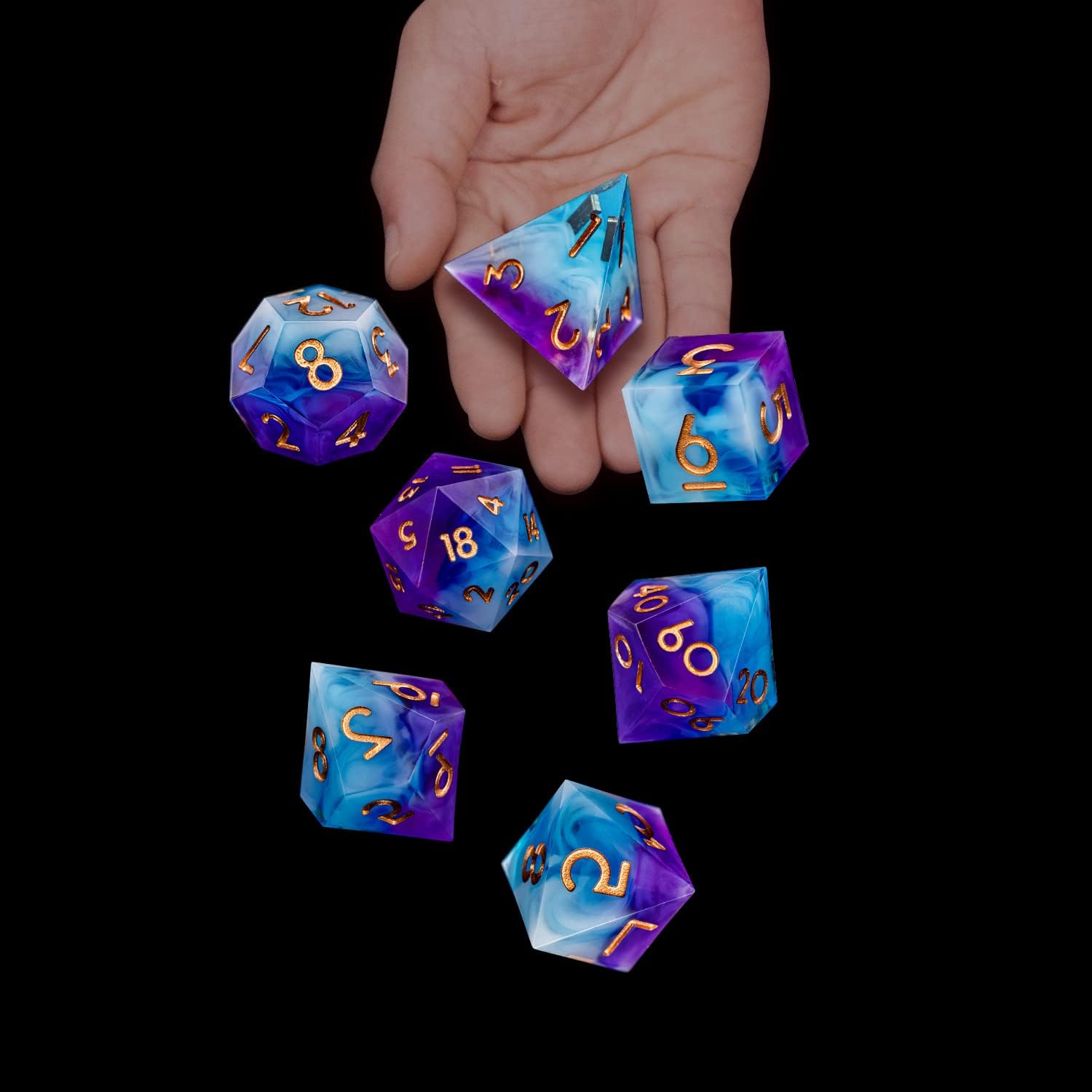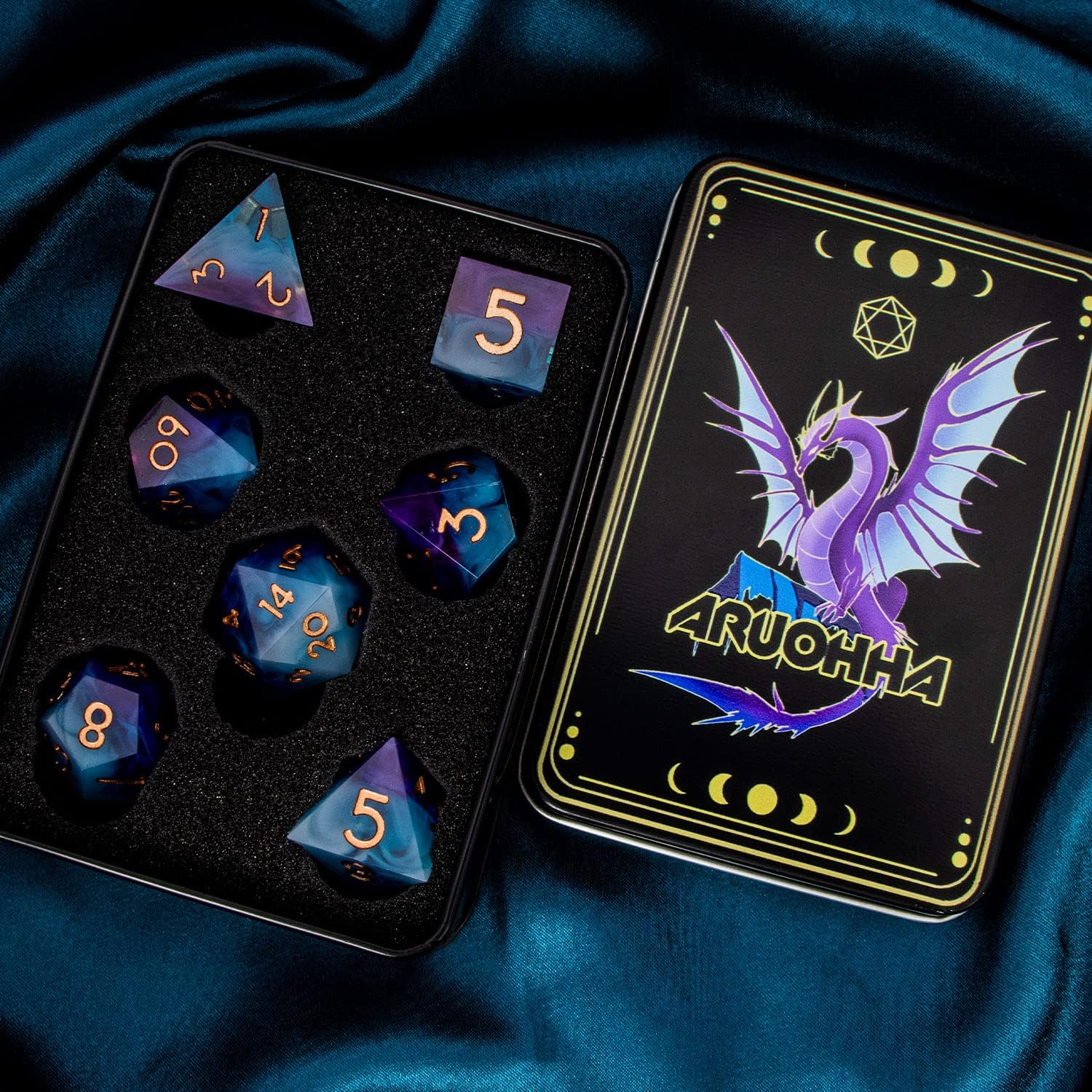 ARUOHHA DND Sharp Edged Dice Set, 7pcs Translucent Polyhedral Dice Set with Gift Box, Resin D and D Dice Set RPG Role Playing Game D20 D12 D10 D8 D6 D4