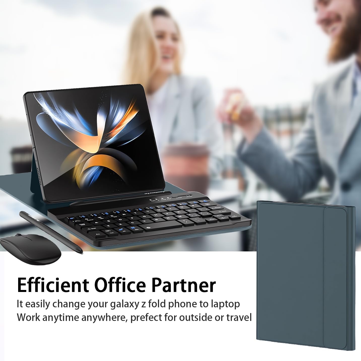 - 4 IN 1 KEYBOARD SET : With keyboard and mouse set, it easily change Z Fold 6 5 4 or tablets into a mini laptop . Wireless keyboard and mouse set is a wonderful office accessories for galaxy z fold 6 5 4 3 foldable phones