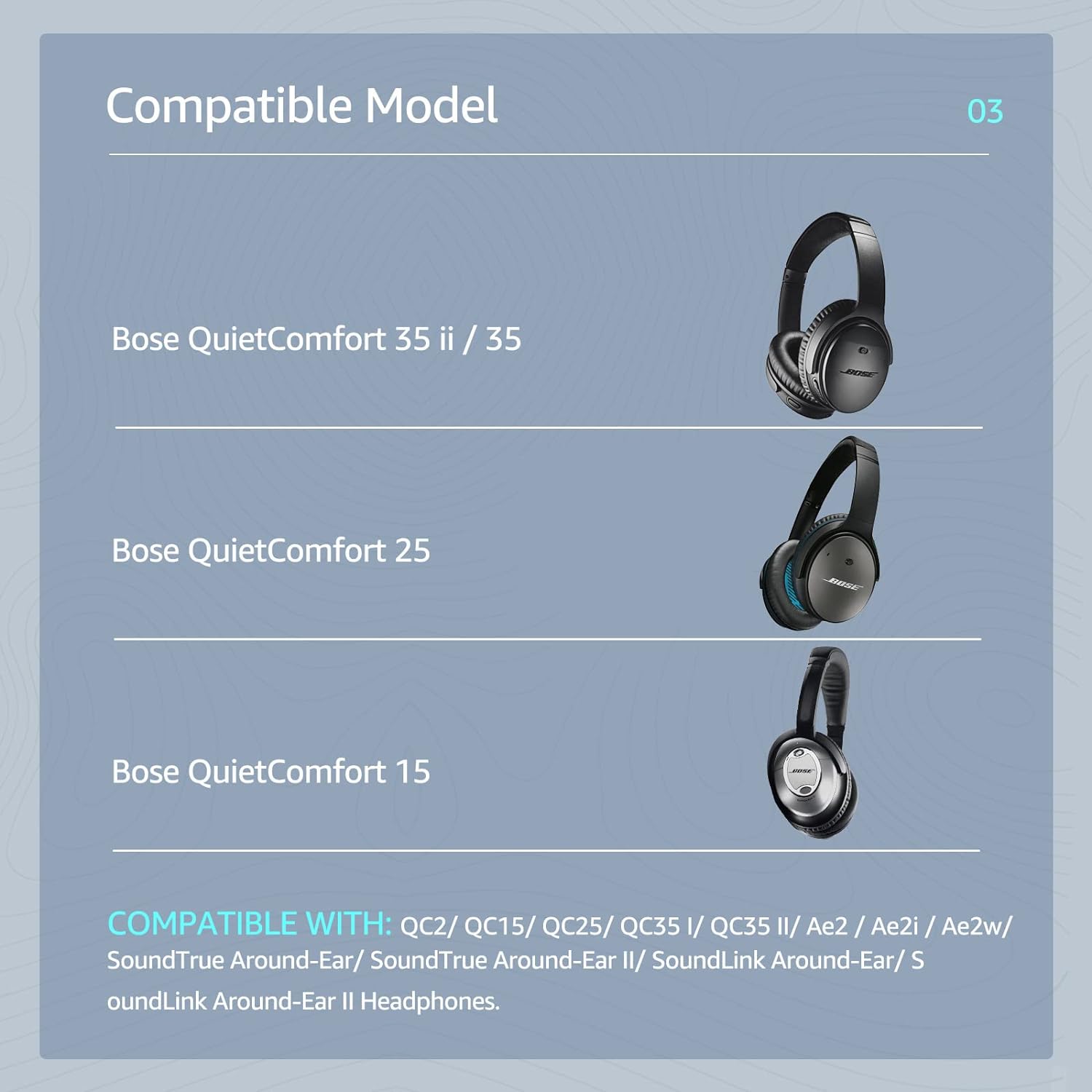 - Perfectly Compatible - Our Bose QuietComfort 35 replacement earpads perfectly match like Bose QC45 QC35 ii QC25 QC15, also compatible Around-Ear 2 AE2i AE2w/ SoundTrue & Bose SoundLink Series. Our Bose headphone replacement pads don't affect the original noise canceling function. On the contrary, our bose qc45 replacement ear pads fabric have a better wrap and allow you to immerse yourself in the Bose noise cancelling headphones
