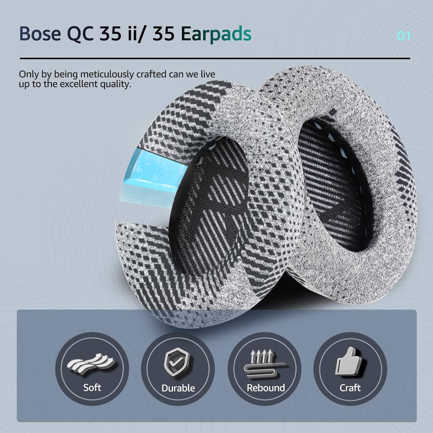- Premium Quality - Our Bose QC25 replacement ear pads are made from premium materials. All Bose headphones replacement ear pads are made of high-density memory foam, which fits your ear perfectly. The top layer of Bose QC35 ii replacement earpads is smooth fabric, comfortable touch. Plus, we adapt the advanced ultrasonic pressing technology, which ensures maximum comfort and durability