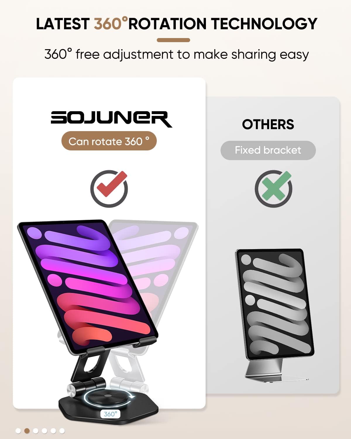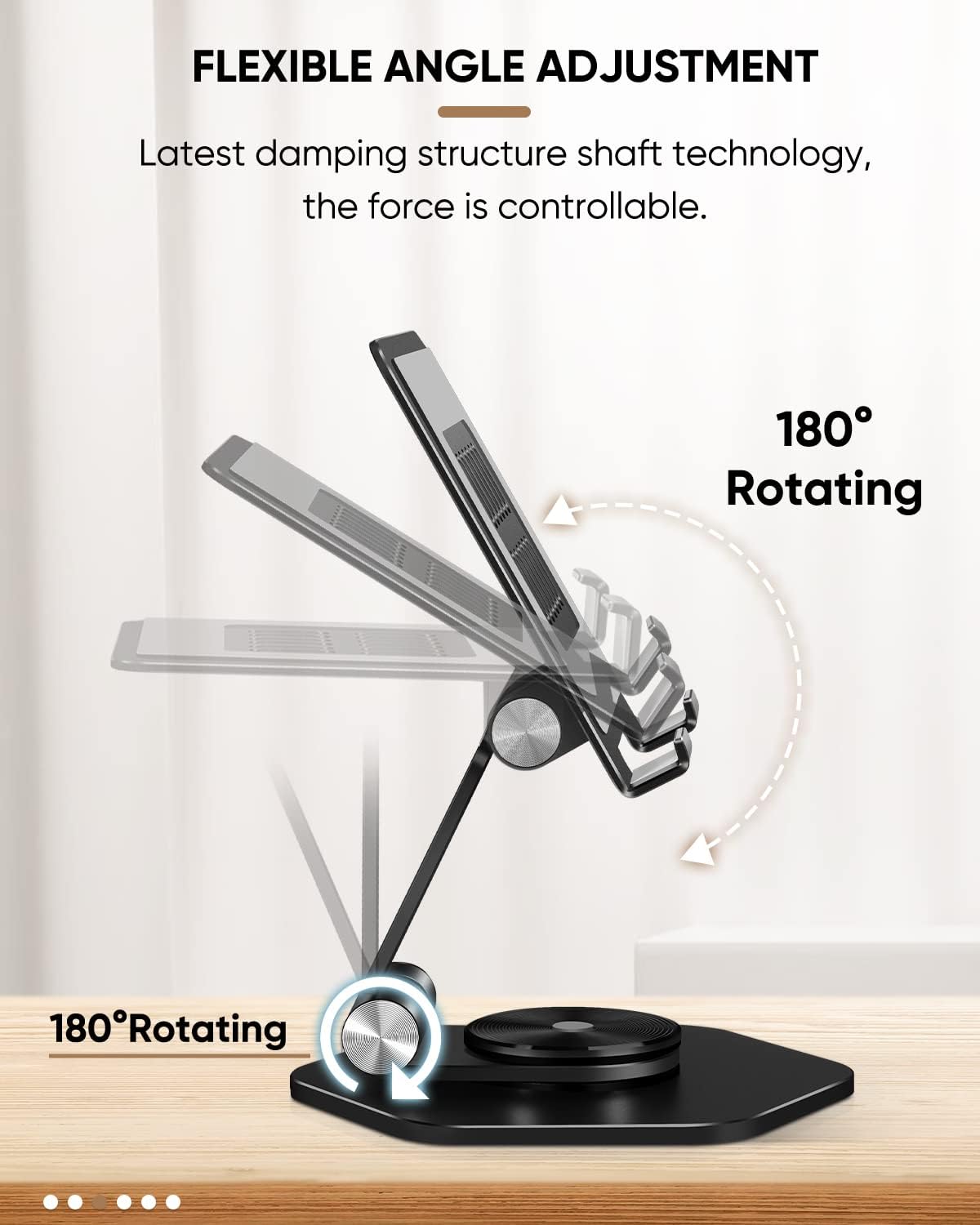 Foldable Aluminum Tablet Stand for Desk, 360° Swivel iPad & Tablet Holder – Portable & Stable Desktop Mount for 5–12.9in Devices, Black