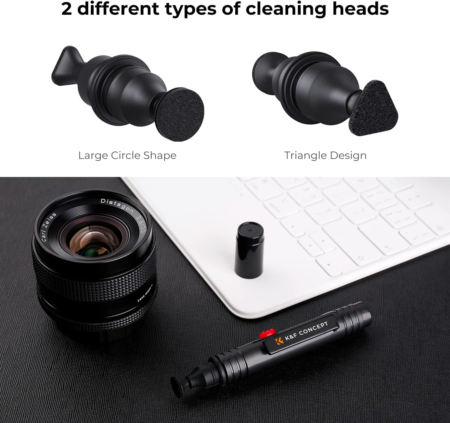K&F CONCEPT Professional Lens Cleaning Pen with Soft Brush, Carbon Head Lens Cleaning Pen Compatible with Canon, Nikon, Pentax, Sony Digital Camera Cleaning,AR VR Glasses Cleaning