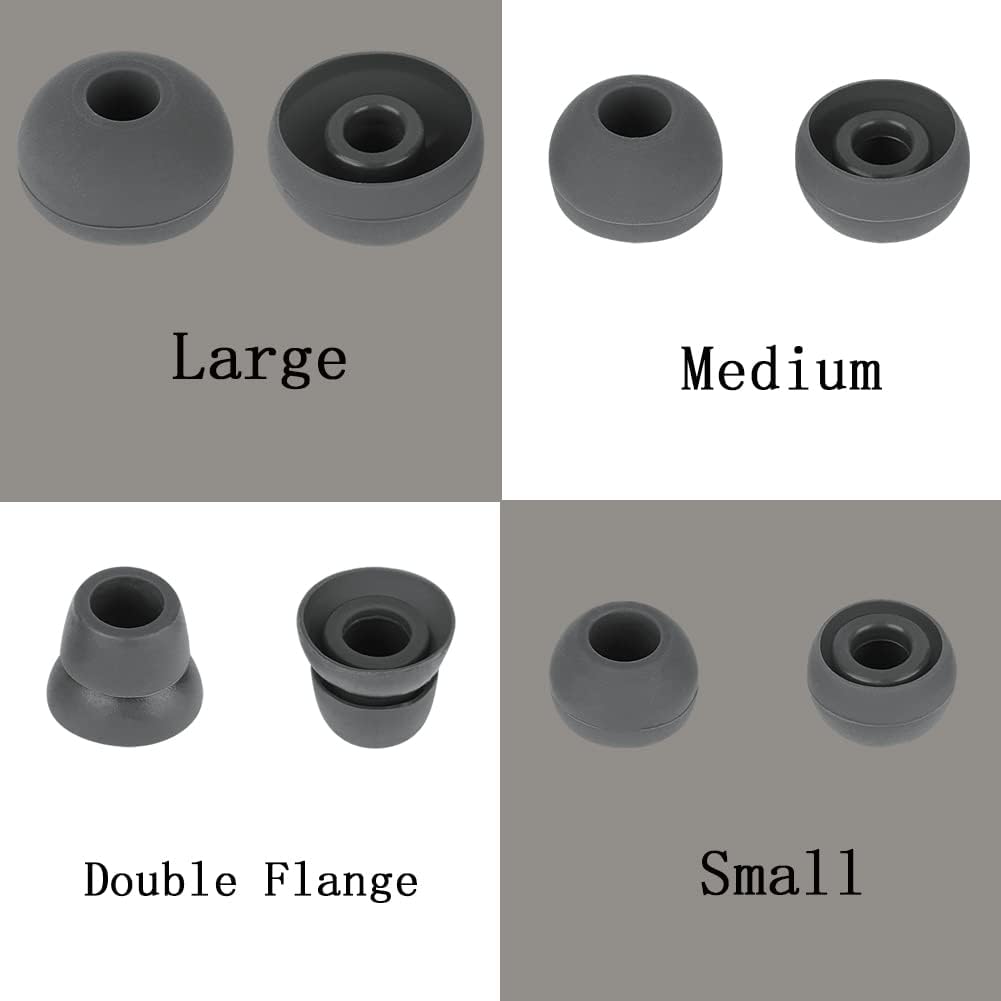 - 5.Package Included: A box, a cleaning cloth ,1 Pairs of Large + 1 Pairs of Medium + 1 Pairs of Small Earbuds + 1 Pairs of Double Flange Earbus(Earphones not included).