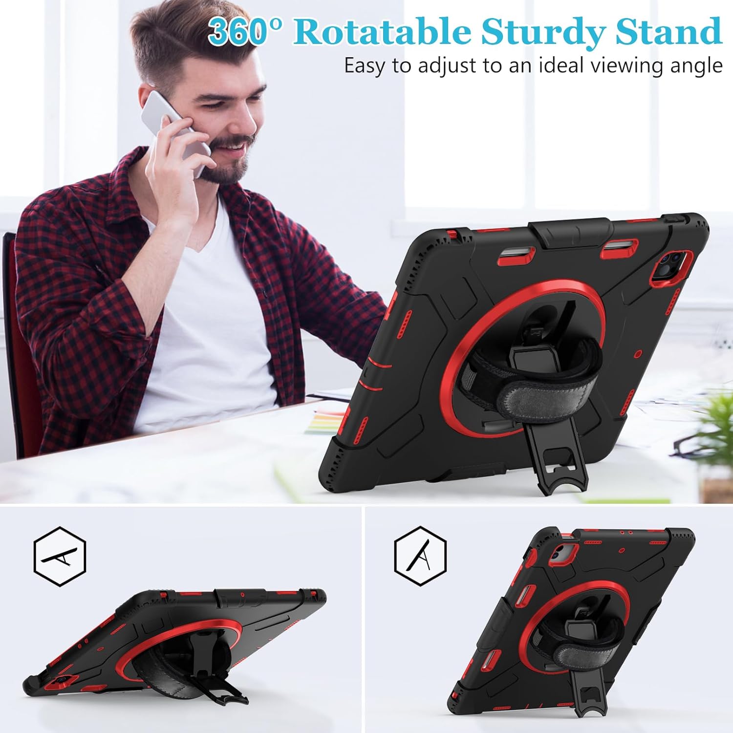 - 360-DEGREE ROTATING/MULTI-ANGLE STAND: Case for iPad Pro 12.9 2022/2021/2020 built-in 360-degree swivel foldable sturdy kickstand. It can support multi-angle (Vertical, Horizontal). Ideal for watching videos, conferences, typing and drawing, let your hands-free. This sturdy kickstand can be folded when you don't need it.