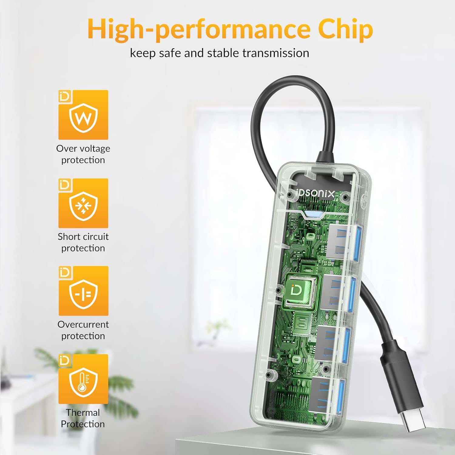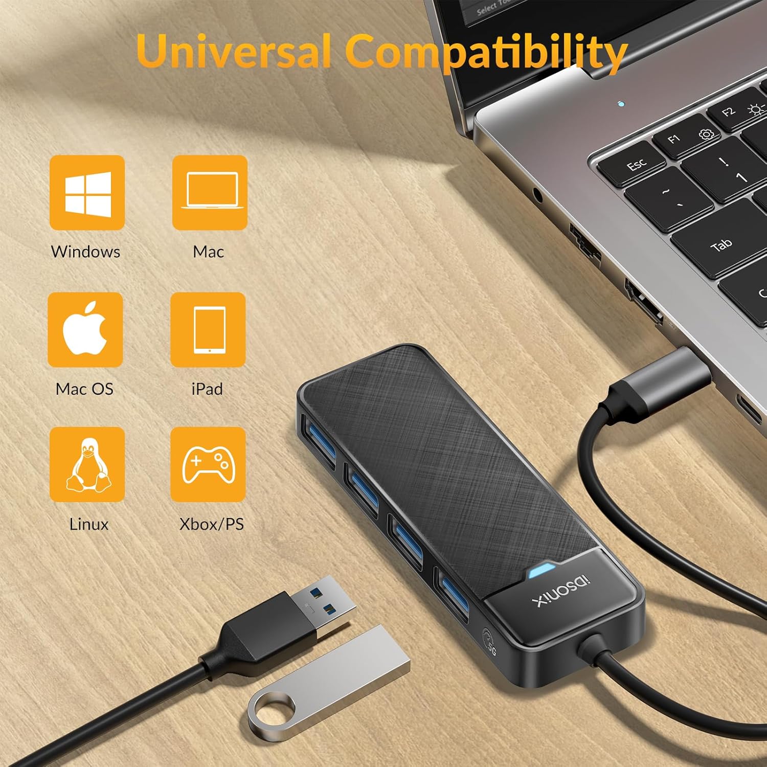 iDsonix USB 3.0 Hub USB C Splitter 5Gbps Data Transfer Ultra-Slim Extender for Desktop, Laptop, Xbox, Flash Drive, HDD, Console, Printer, PC, Keyboards, Mouse [Charging Not Supported] (0.5ft Cable)