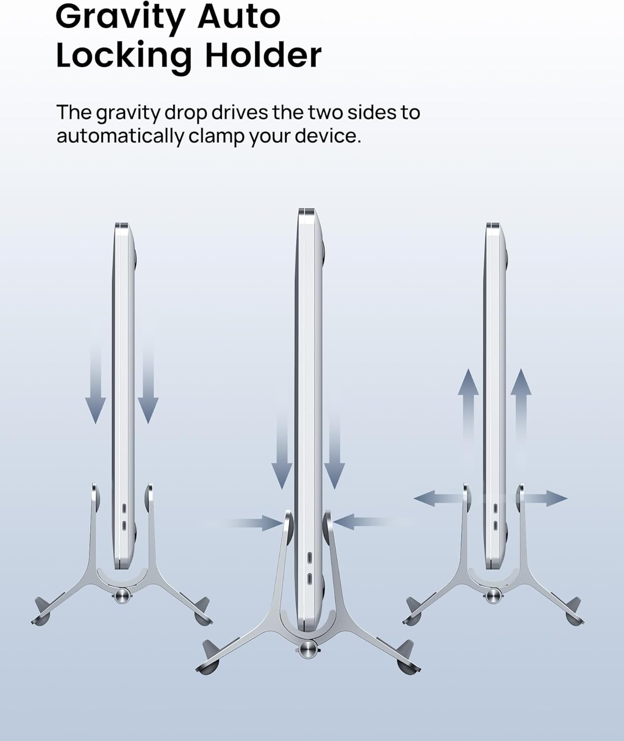 SODI Vertical Laptop Stand for Desk, Gravity Auto Lock Vertical MacBook Stand, Aluminum Laptop Vertical Dock Stand Holder Compatible with MacBook Pro, MacBook Air, Silver