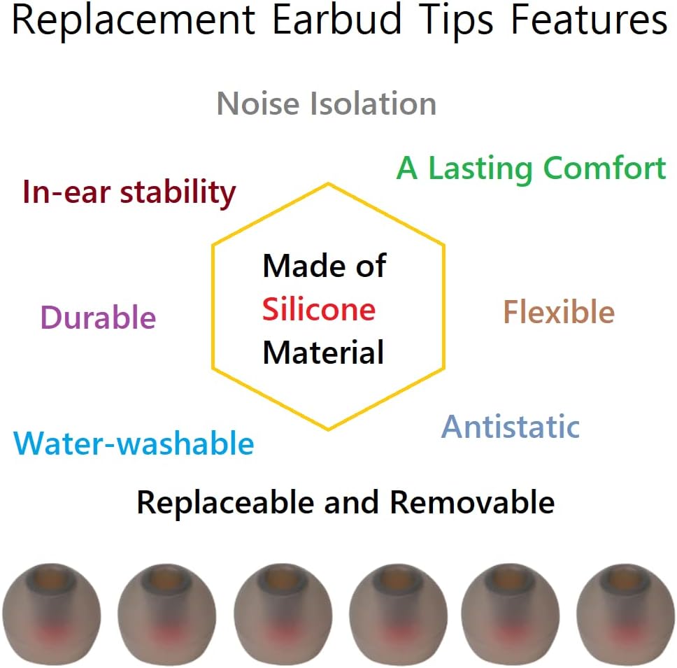 - Material: Earbud Tips are made of silicone , reusable and durable, elastic, soft to touch and comfortable for your ears.