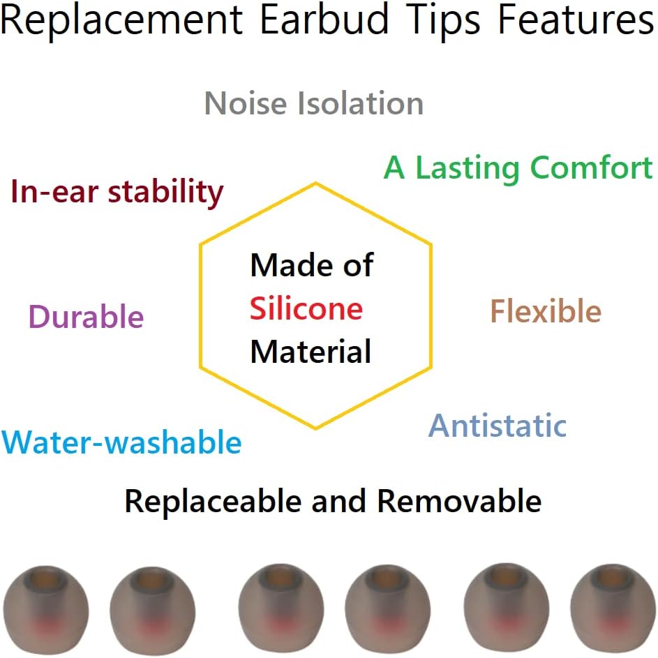 - Material: Earbud Tips are made of silicone , reusable and durable, elastic, soft to touch and comfortable for your ears.