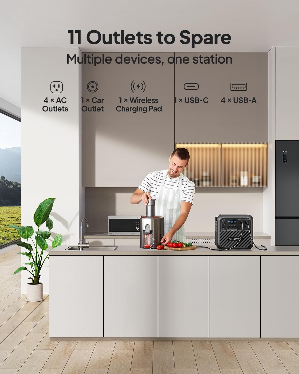 - [Power All Your Needs] - The AC180 boasts 1800W output and 8 outlets to handle almost anything you plug in. With a tap on the BLUETTI App, you can give it a boost to 2700W for your higher needs.