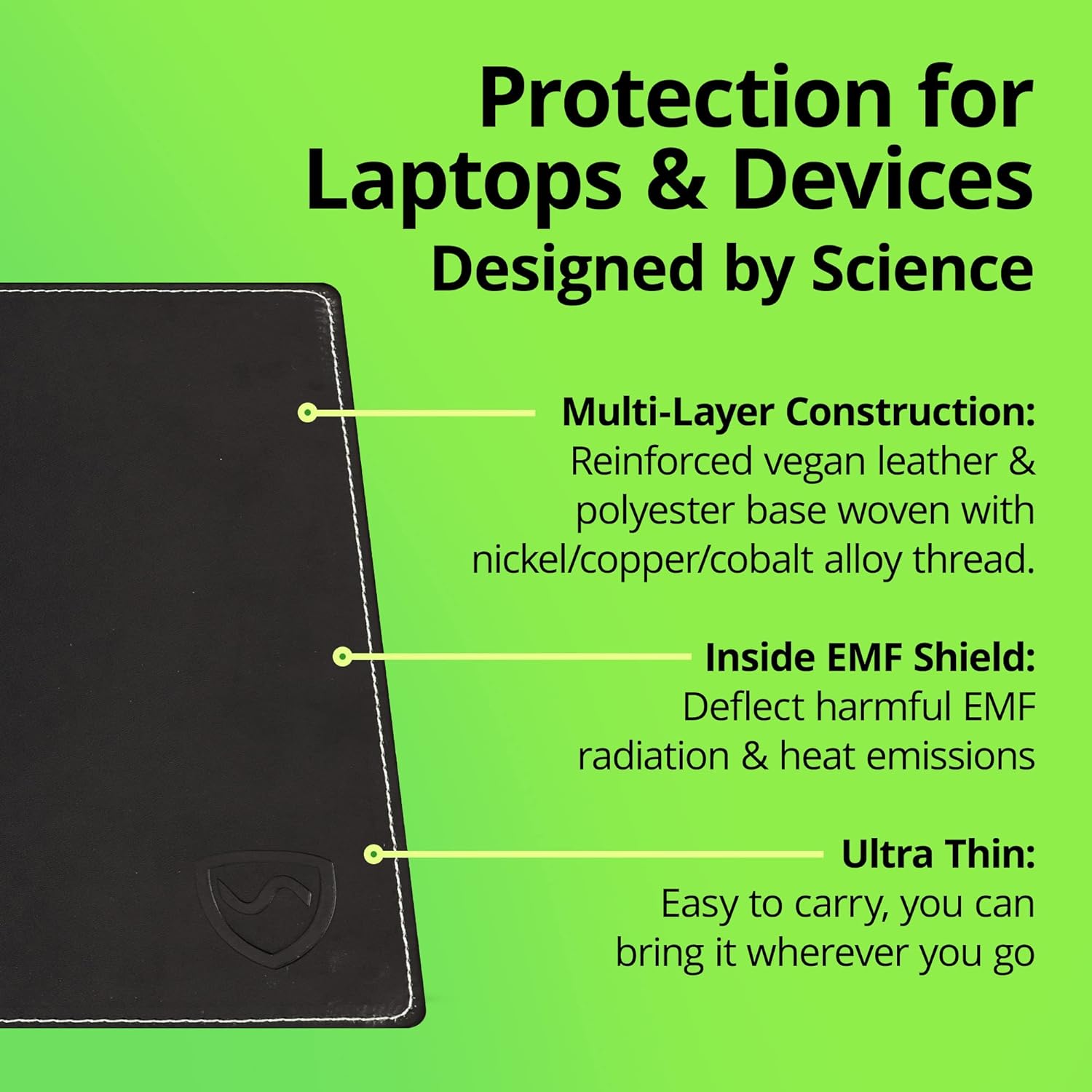 Shield Your Body - Laptop Lap Pad with SaferBody™, Anti Radiation Shield & Heat Shield Pad, EMF Blocker Laptop Pad for Up to 14in.Wide Device (13.8 x 10.7 inches), Jet Black PU Leather Color