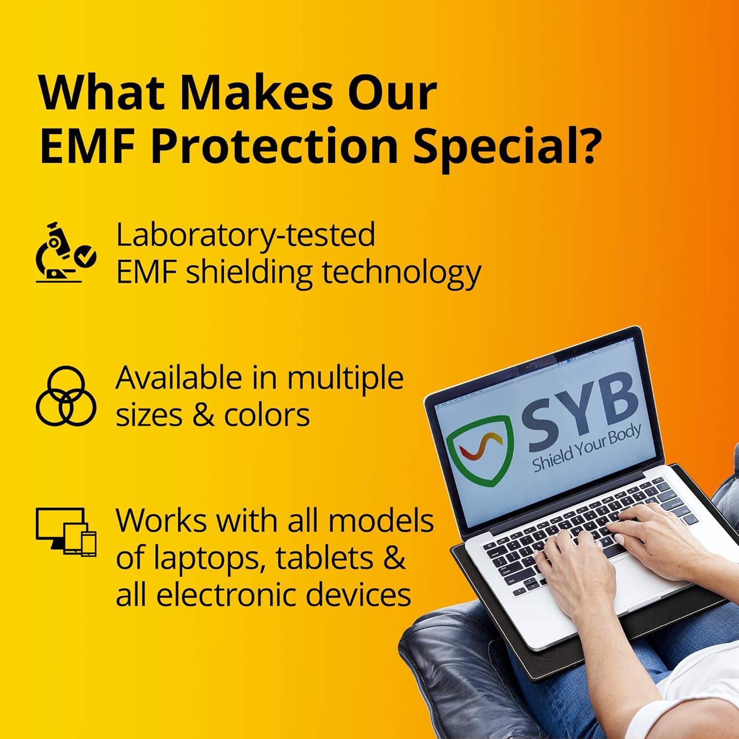 - Triple EMF Blocking Power - Shield Your Body from harmful emissions with the SYB Pad for laptops and tablets. The triple-blocking power keeps you safer from the heat. It also deflects RF: wireless radiations (from Wifi & Bluetooth) and ELF-magnetic radiations (by your device’s power supply).