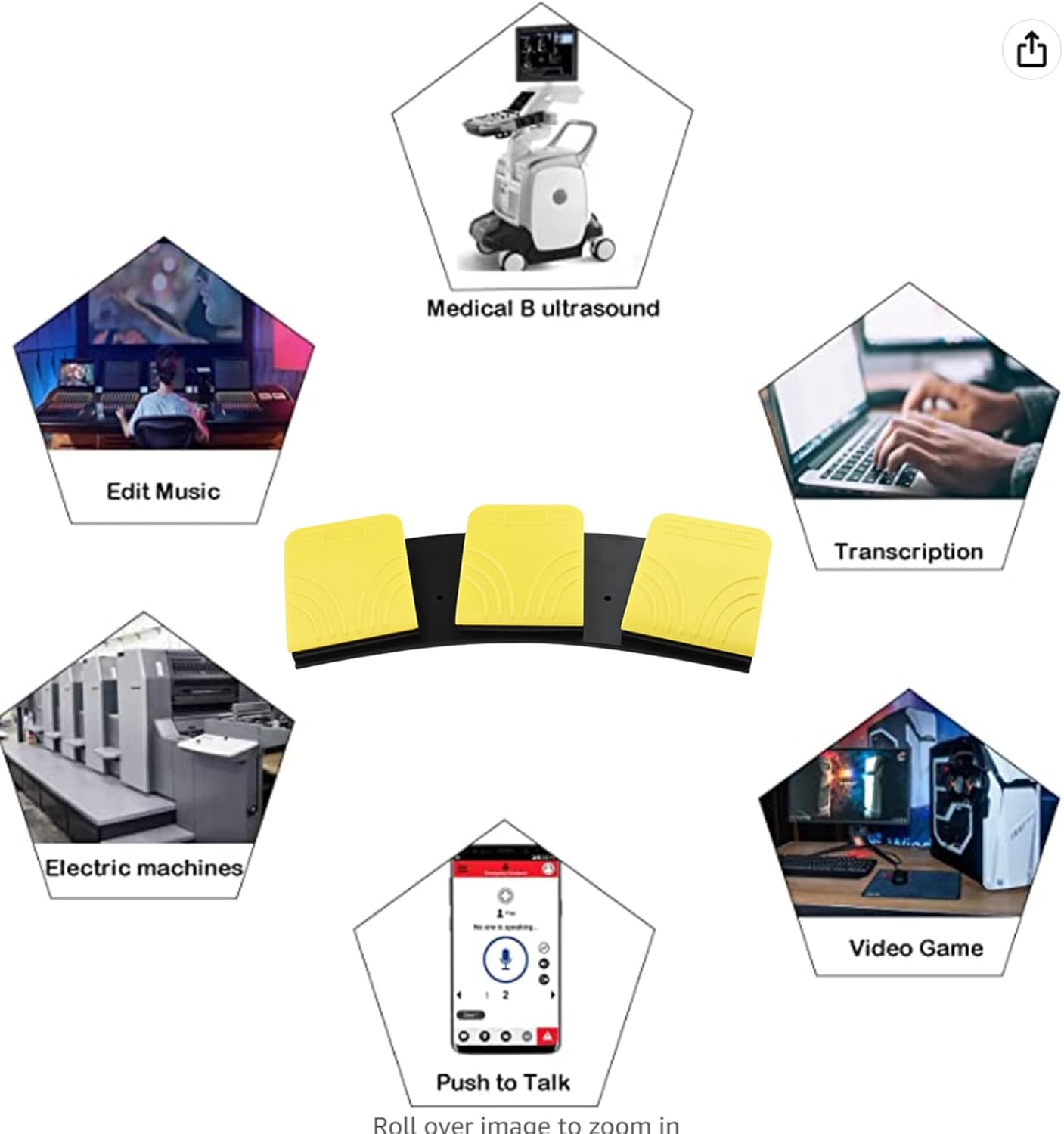 - Appled For- It's designed for a free hands or feet environment for play gaming, singer/guitarist, game with a controller, changing scenes,mute discord, take clips, push to talk ,streaming,muting mic,Photobooth,YouTube,Medical,Zoom, transcription key setting,factory test,instrument control etc.