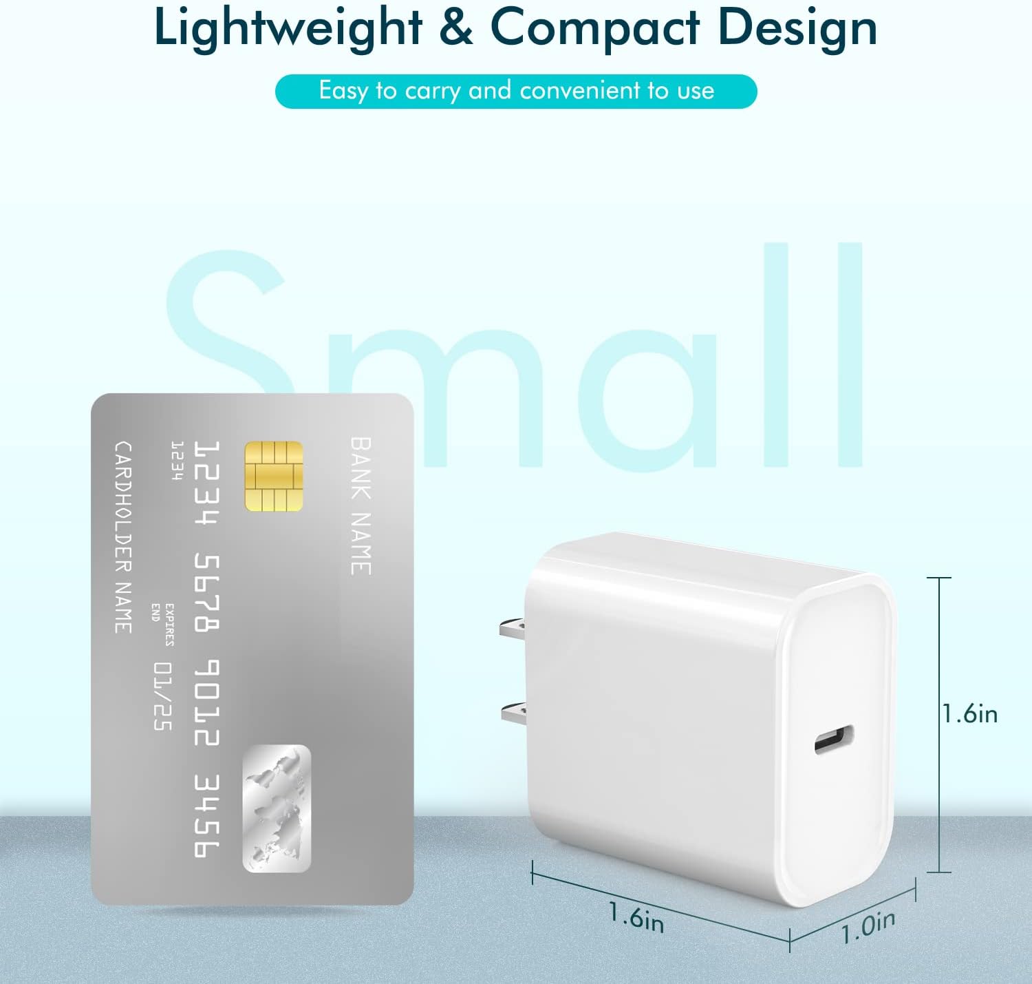 - ◣Applicable iPhone Equipment◥ 20W USB C Fast Charger Compatible with most USB-C devices, including for iPhone 16/16 Plus/16 Pro/16 Pro Max,iPhone 15/15 Plus/15 Pro/15 Pro Max, iPad Pro 12.9 inch 6th/5th/4th/3th (2022/2021/2020/2018), iPad Pro 11 inch 4th/3th/2th/1th (2022/2021/2020/2018), iPad Air 5th (2022), iPad Air 4th (2020), iPad Mini 6th Gen (2021), iPad 10th Generation 10.9 inch (2022); Also compatible with Google Pixel 7/6/5/4/3/2/XL, and more USB C android phones.