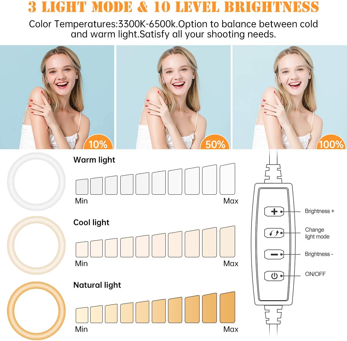 - Customizable Lighting: With 3 color lighting modes (warm, cool, and natural) and 10 brightness levels, Yarrashop dimmable circle lamp allows you to customize your lighting to suit your needs. Say goodbye to unflattering shadows and hello to perfect lighting every time.
