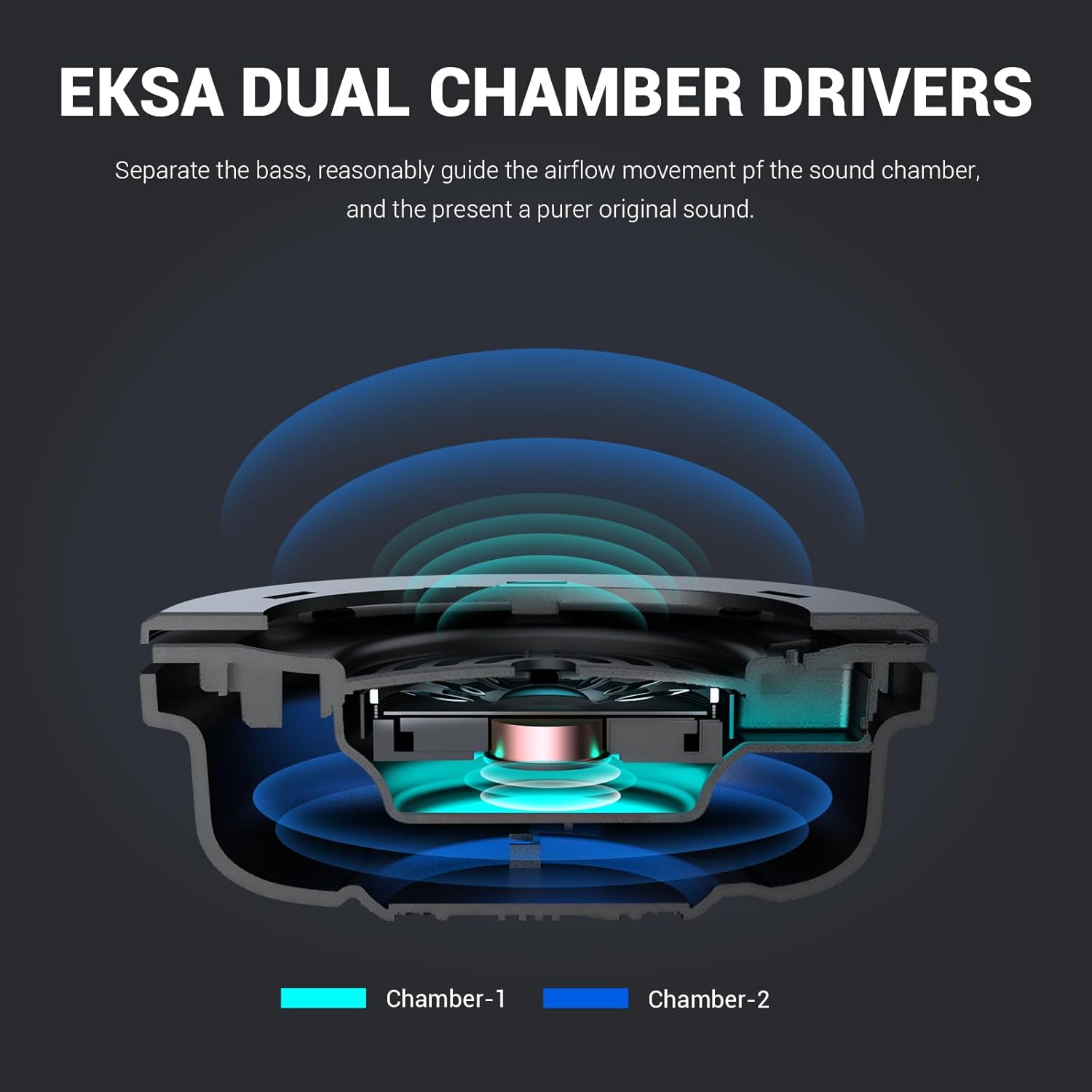 - [Dual Chamber & 50MM Drivers] The EKSA Dual Chamber Drivers separate bass and mid-high frequencies into their own dedicated chambers, reducing interference and providing a strong, solid bass and natural mid-high tones. With 50MM drivers that comes with DLC carbon fiber composite diaphragm and oxygen-free copper voice coil, the pc headset delivers a superior sound quality with higher purity and lower distortion.