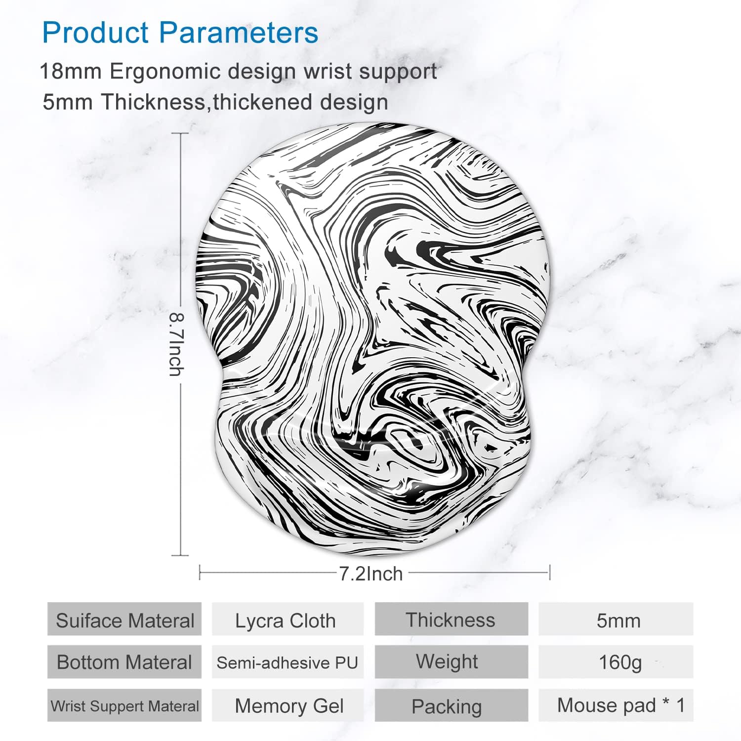 ITNRSIIET Ergonomic Mouse Pad with Gel Wrist Support Small Wrist Rest Smooth Surface Non-Slip PU Base Comfortable Office Supplies Pain Relief, 8.7 x 7.2 inches, Black and White Texture