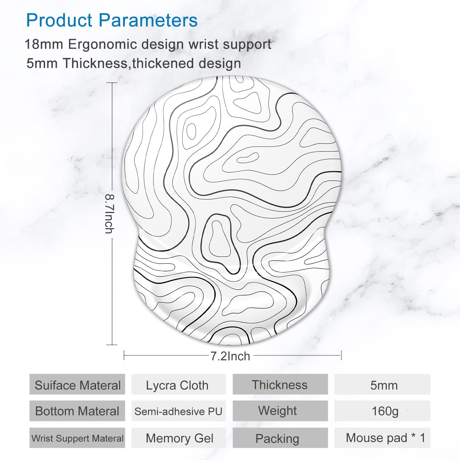 ITNRSIIET Ergonomic Mouse Pad with Gel Wrist Support Small Wrist Rest Smooth Surface Non-Slip PU Base Comfortable Office Supplies Pain Relief, 8.7 x 7.2 inches, Topographic Contour White