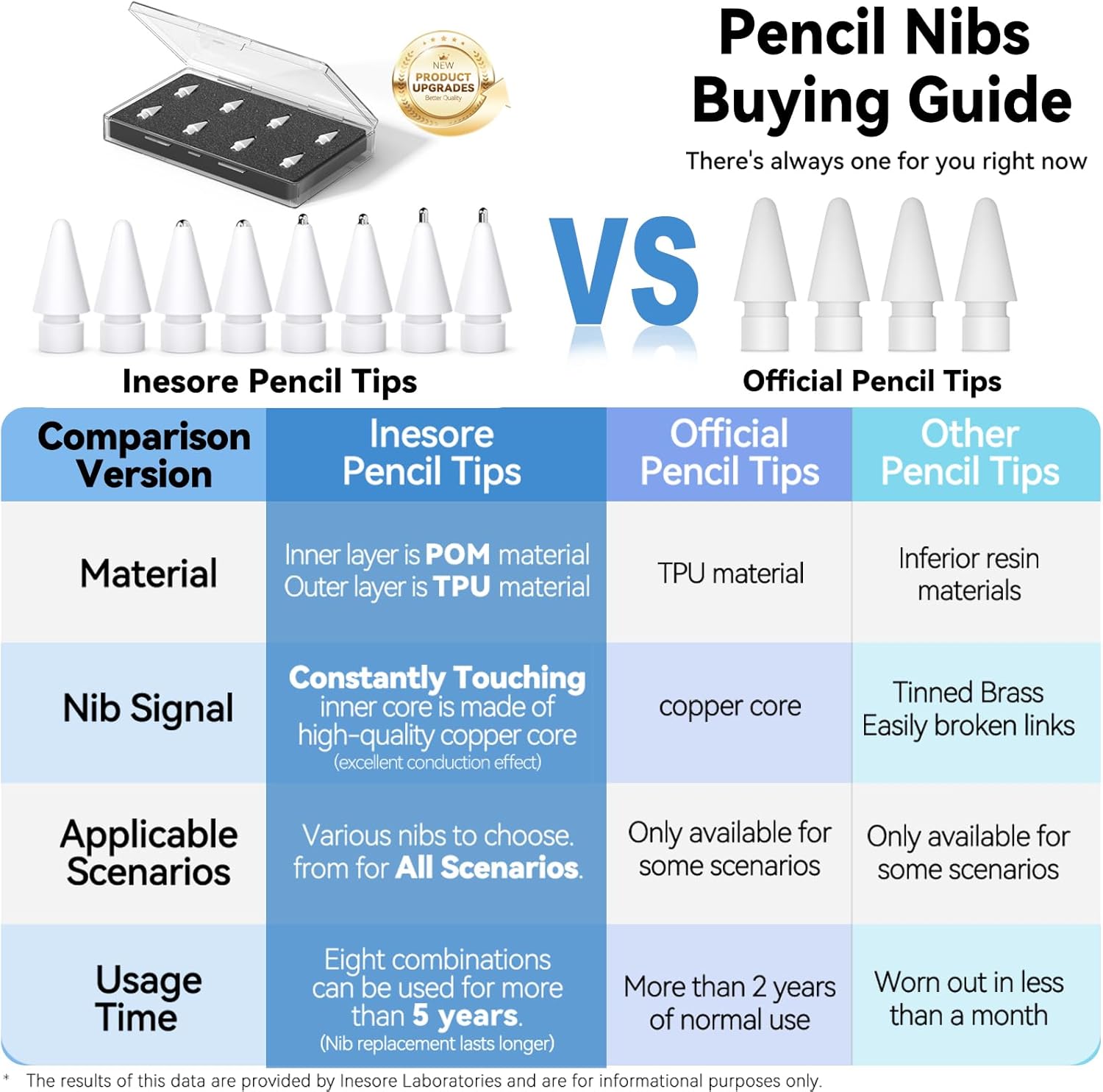- 【TIPS FOR APPLE PENCIL 】:Inesore Upgraded Apple Pencil Tips for iPad Pro /Apple Pencil Pro/Apple Pencil 1st Generation/Apple Pencil 2nd Generation/Apple Pencil USB-C.
