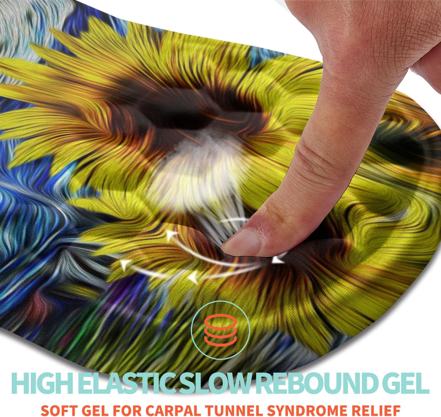 Ergonomic Mouse Pad Wrist Support with Memory Foam Massage Bulge, Carpal Tunnel Pain Relief Mousepad Wrist Rest for Mouse(12x8 inch,Sunflower)