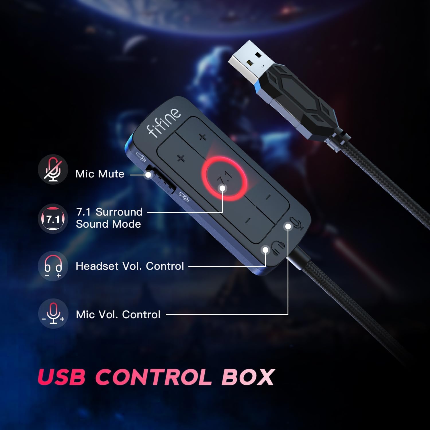 FIFINE PC Gaming Headset, USB Headset with 7.1 Surround Sound, Detachable Microphone, Control Box, 3.5mm Headphones Jack, Over-Ear Wired Headphones for PS5/Xbox/Switch, Black-AmpliGame H9
