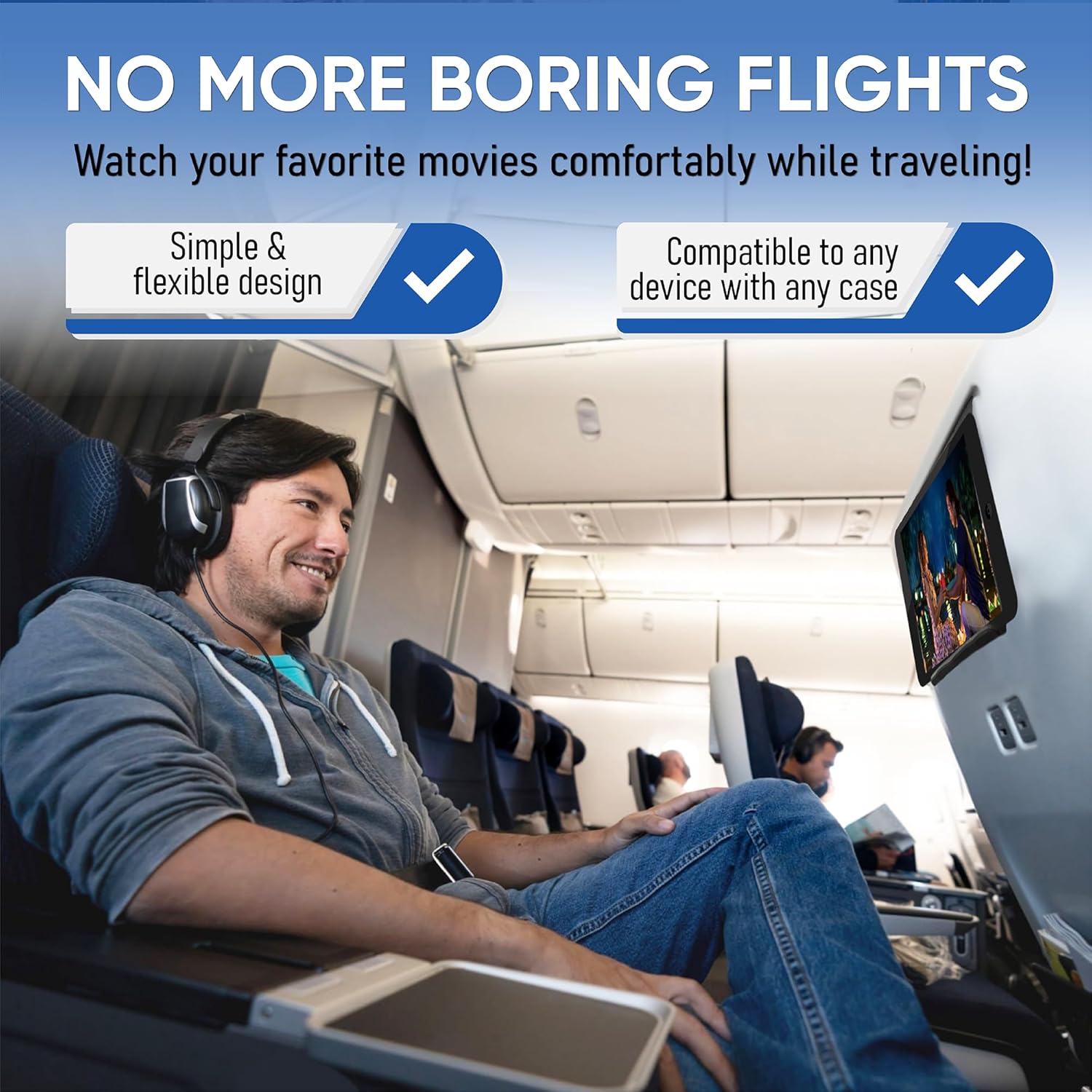 Airplane Travel Essentials for Flying Flex Flap Cell Phone Holder & Flexible Tablet Stand for Desk, Bed, Treadmill, Home & in-Flight Airplane Travel Accessories - Travel Must Haves Cool Gadgets (XL)