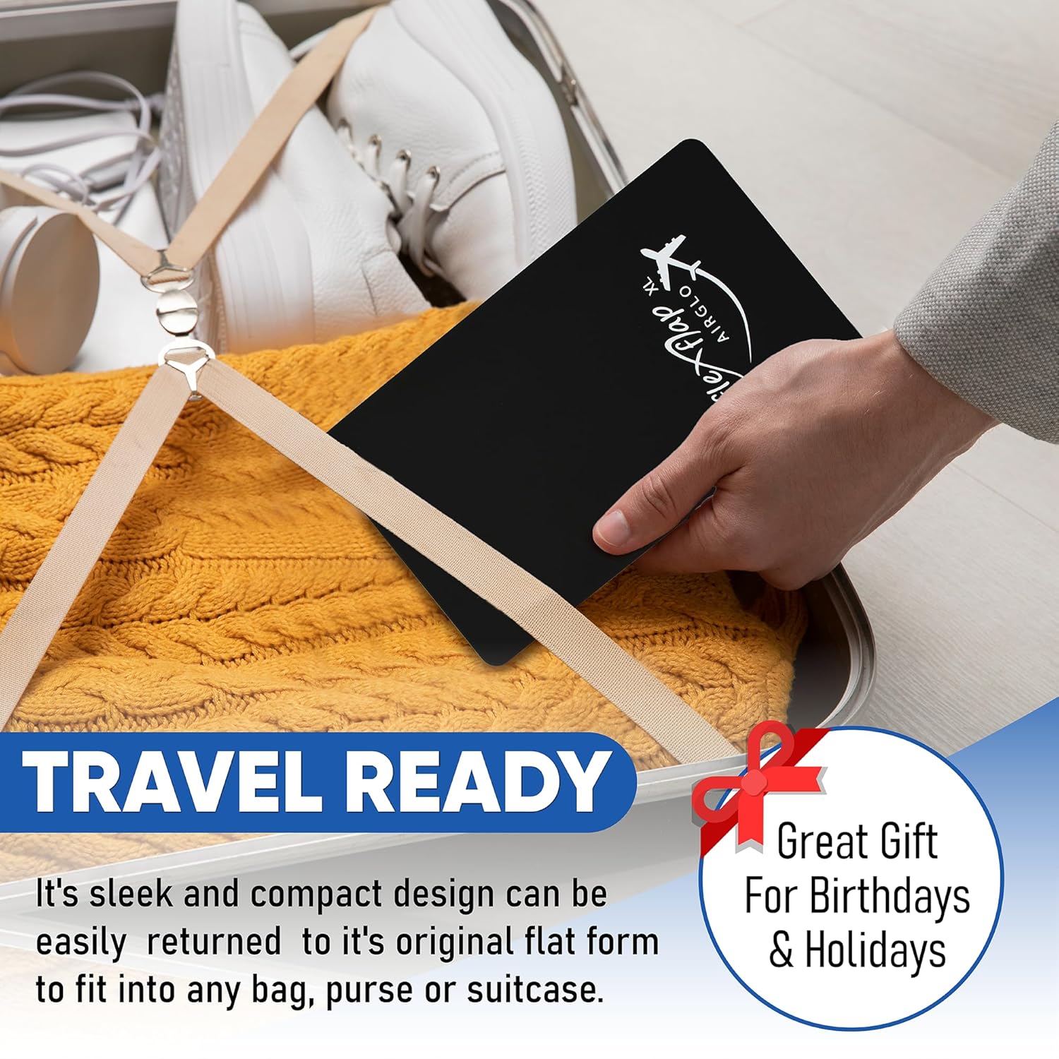 - TRAVEL READY - Flex Flap will become one of your essential airplane travel accessories. It's sleek and compact design can be easily returned to it's original flat form to fit into any bag, purse or suitcase.