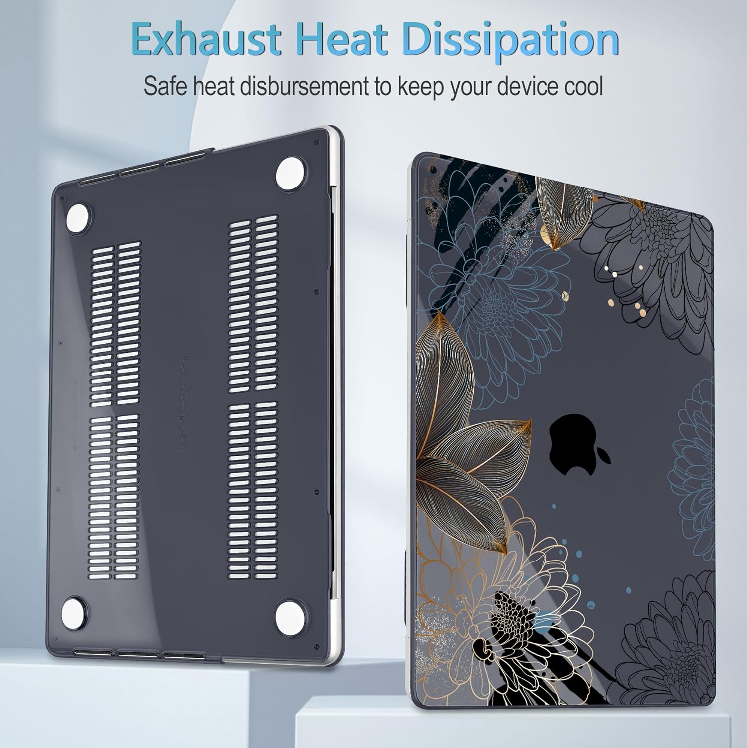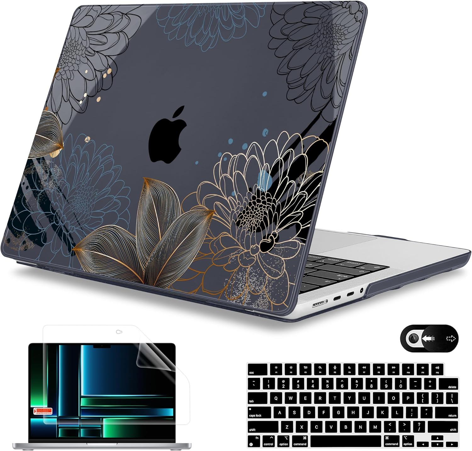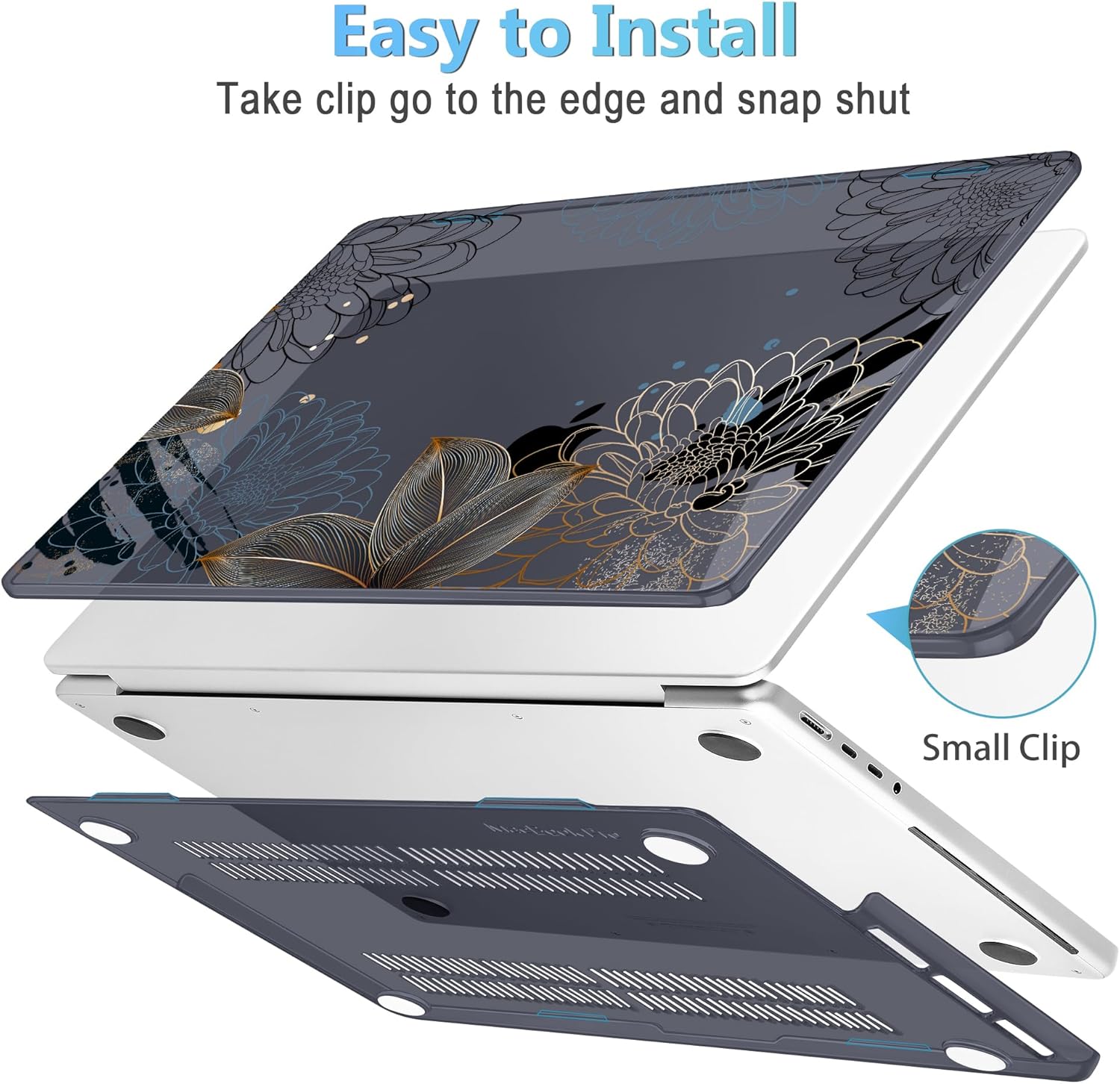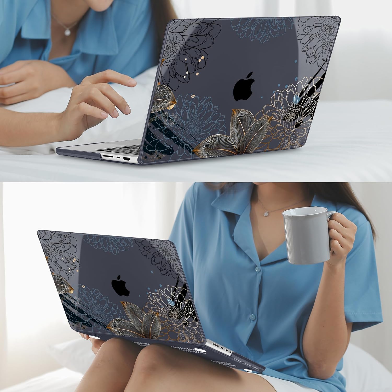 Mektron Case for MacBook Pro 16" M4 A3403 A3186 M3 A2991 M2 A2780 M1 A2485 (2021/2023/2024) Pro/Max with Touch ID, Hard Shell Plastic Laptop Cover Keyboard Cover Screen Protector, Line Chrysanthemums
