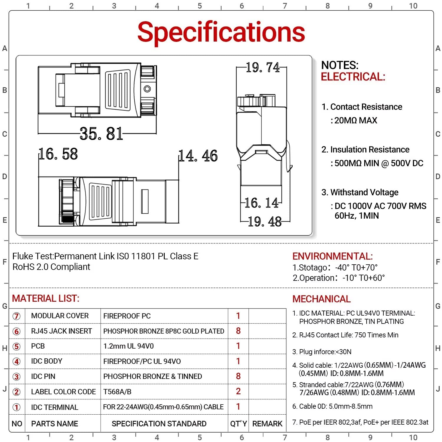 - 【Compliance with Standards】Meets the TIA/EIA-568-A/TIA/EIA-568-B Standard, as well as meeting signal-to-noise ratio and crosstalk performance specifications, RoHS compliant,and PoE/PoE+ (Power over Ethernet) supported