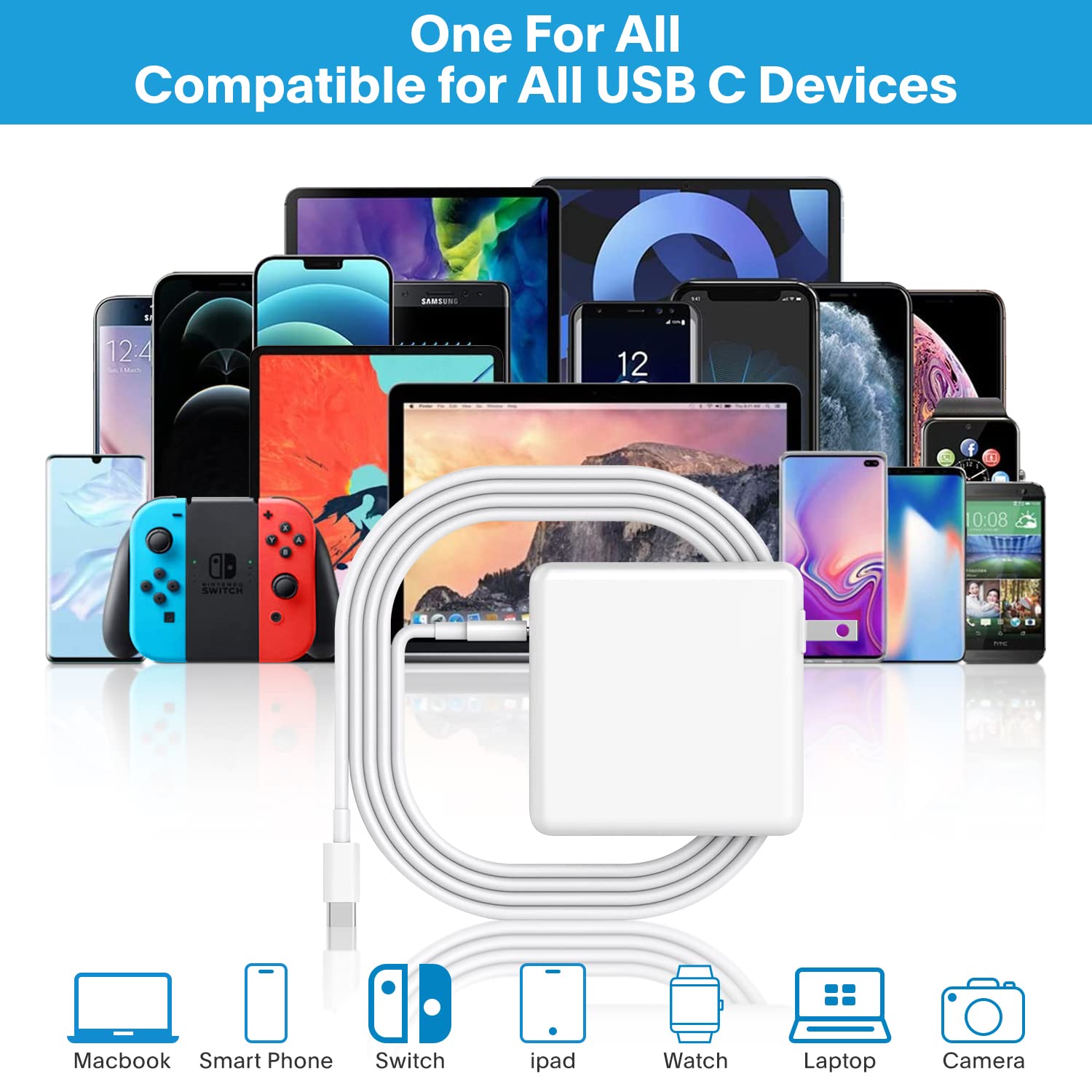 - Compatible Devices : Laptops, MacBook Air 15 inch(M3, 2024), MacBook Air 15 inch(M2, 2023), MacBook Air 13 inch(M3, 2024), MacBook Air 13 inch(M2, 2022), MacBook Air 13 inch(M1, 2020), MacBook Air Retina 13 inch 2020, 2019,2018, MacBook Pro 16 inch(M3, 2023), MacBook Pro 16 inch(M2, 2022), MacBook Pro 16 inch(M1, 2021), MacBook pro 16 inch 2019, MacBook Pro 14 inch(M3, 2023), MacBook Pro 14 inch(M2, 2022), MacBook Pro 14 inch(M1, 2021), MacBook Pro 13 inch(M2, 2022),MacBook Pro 13 inch(M1, 2020), MacBook Pro 13 inch 2020,2019,2018,2017,2016, MacBook Pro 15 inch 2019,2018,2017,2016,Model A2780, A2452,A2141, A2442, A2338, A2251, A2159, A1989, A1706, A1708, A1990, A1707, IPad Pro 12.9 / 11 inch, iPad Air 5 / 4, iPad Mini 6, iPad 10, Surface Book 3 / 2 / 1, Surface Pro 8 7 6 5 4 3(Use USB C charging port), Dell, Lenovo, HP, iPhone 15, 15Pro, 15Plus, 15Pro Max, Samsung Chromebook, Any USB C device, Smartphones, Tablets, macbook pro charger laptop charger mac book charger usb c charger mac book air charger mac charger mac book pro charger mac charger mac book pro mac air charger mac laptop charger mac pro charger mac charger usb c mac book computer charger mac book laptop charger mac computer charger Laptops, MacBook Air 15 inch(M3, 2024), MacBook Air 15 inch(M2, 2023), MacBook Air 13 inch(M3, 2024), MacBook Air 13 inch(M2, 2022), MacBook Air 13 inch(M1, 2020), MacBook Air Retina 13 inch 2020, 2019,2018, MacBook Pro 16 inch(M3, 20… See more