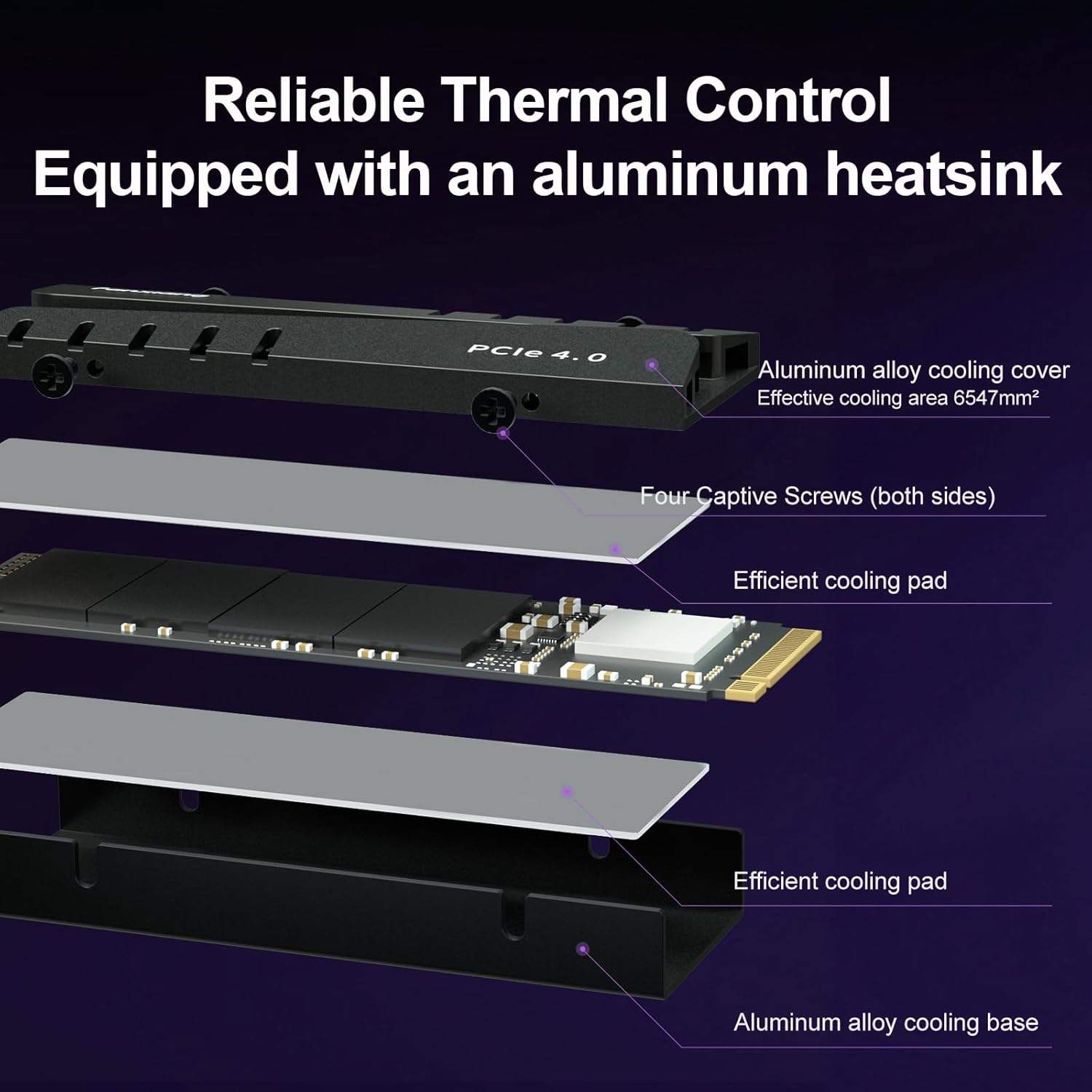 - 【Smart Cooling for Zero Throttling】Integrated aluminum heatsink prevents thermal throttling during marathon sessions. The heatsink disperses heat to maintain speed, power efficiency, and thermal control, preventing Playstation 5 and PC performance degradation due to overheating, ideal for building high-performance PC computing and gaming systems. Maintains peak speeds in PS5 slim slots or cramped PCs. – no more deleting games!