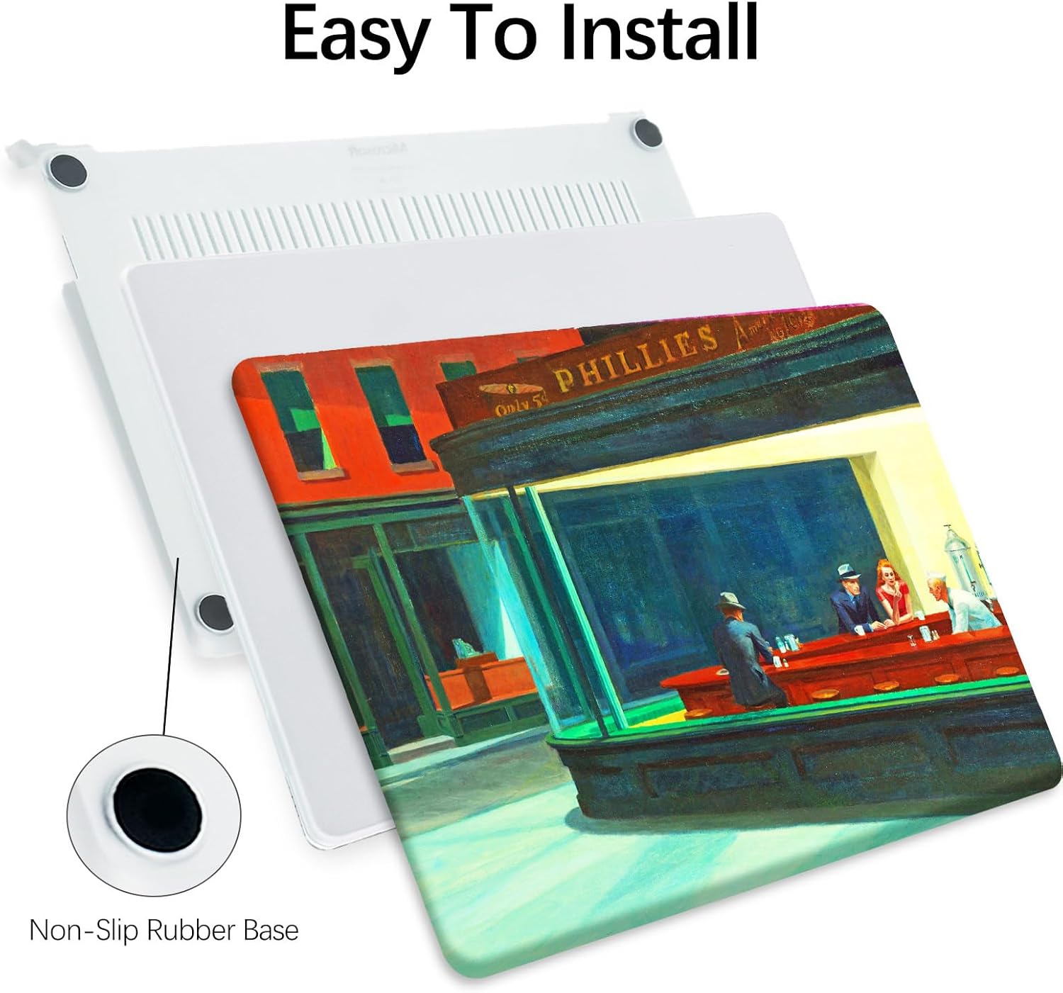 Berkin Arts Compatible with MacBook Air 13 inch Cover, 2022-2018 Release A2179/A2337 M1 with Touch ID with Keyboard Cover & Screen Protector American Scene Painting (Nighthawks by Hopper)