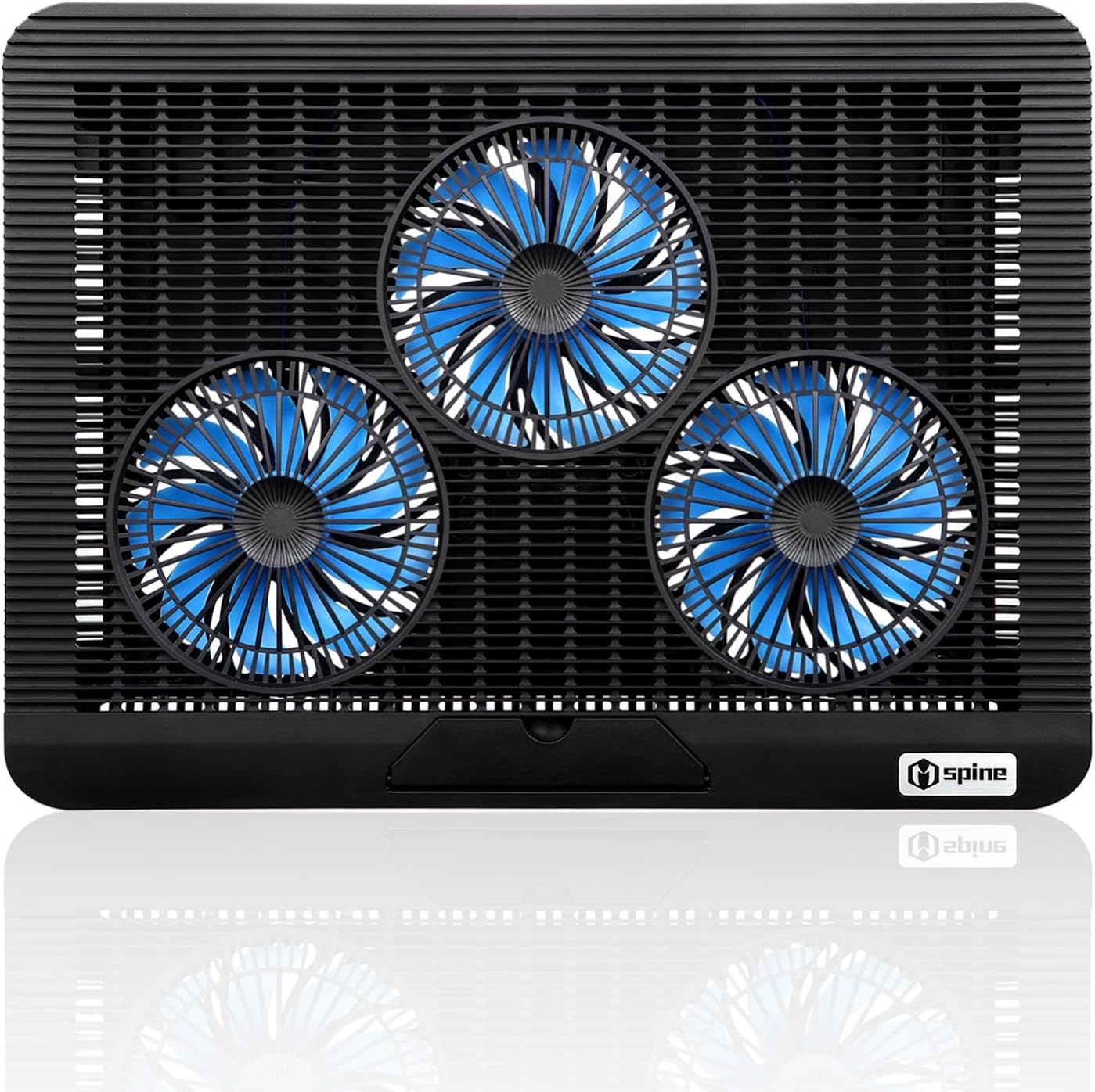 Laptop Cooling Pad, Mspine Laptop Cooler with 3 Blue Silent Fans, Ergonomic USB Powered Laptop Stand with Dual USB 2.0 Ports, Height-Adjustable Notebook Cooler for Notebook Under 17"- Black