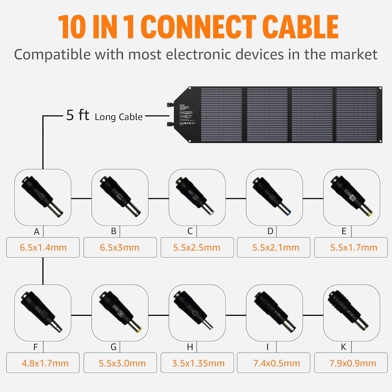 - ⚡【What You Get】1* 100W Solar Panel; 1* 10-in-1 Connect Cable; 1* DC-to-Anderson Cable; 1* DC-to-DC Cable; 1*User Manual.We offer 7*24 rapid customer service and 12 months Warranty. Please feel free to contact us if there any issue arise.