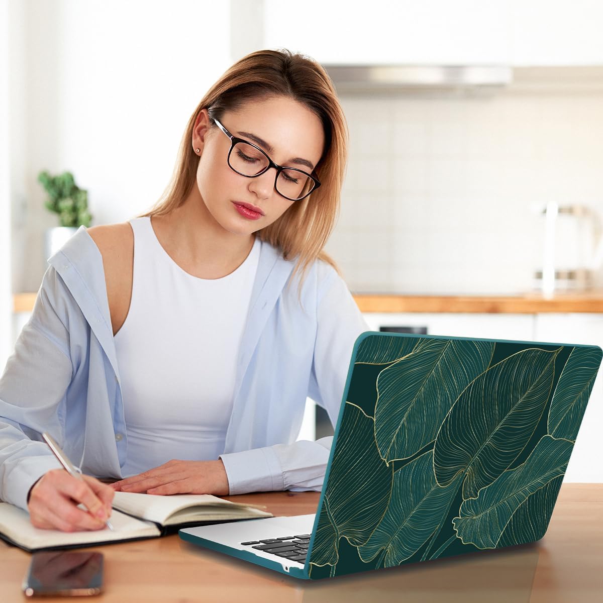 Teryeefi Compatible with MacBook Air 13.6 Case M2 M3 M4 2022-2024 2025 Release (Model:A2681 A3113/A3240), Plastic Hard Shell Cover with Screen Protector & Keyboard Cover & USB 3.0 Adapter, Green Leaf