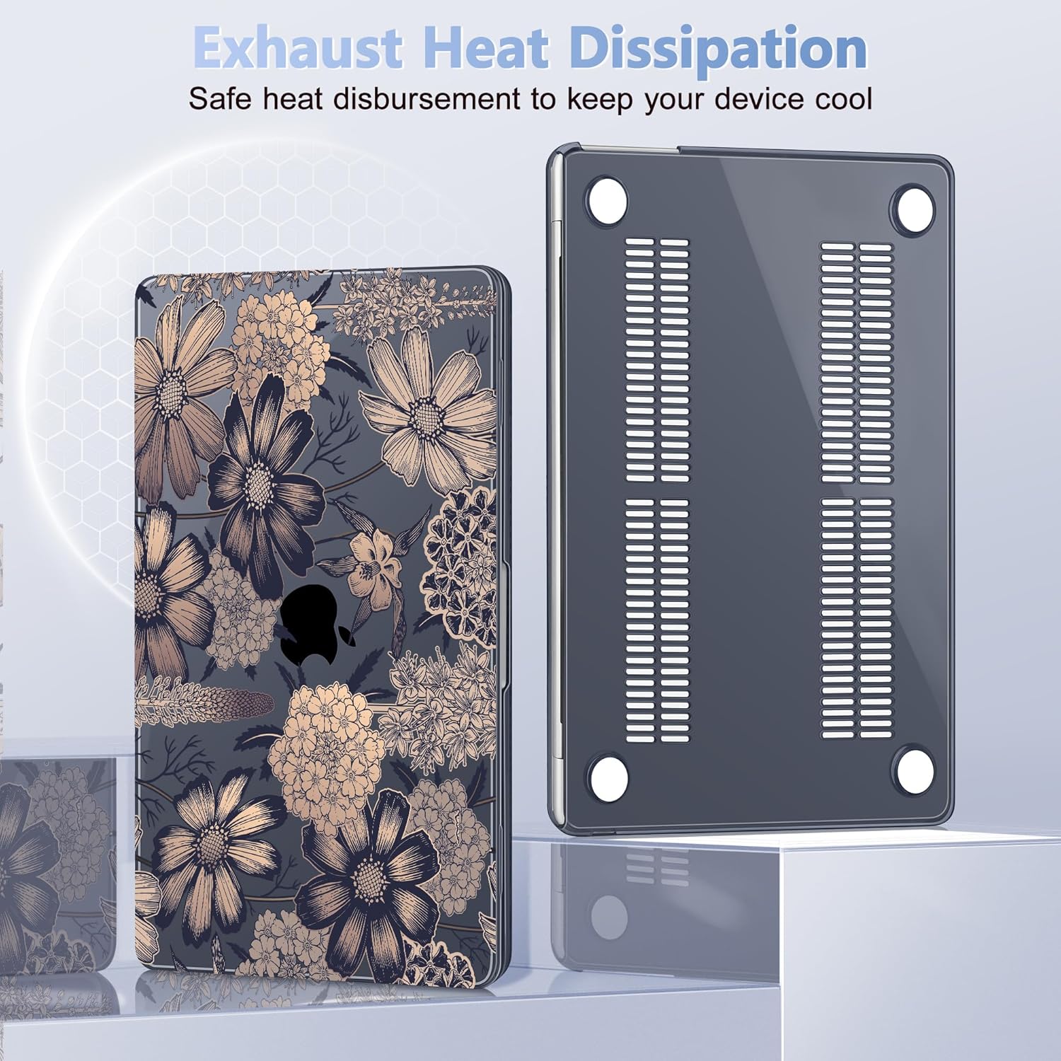 - Exhaust heat dissipation: Two rows of bottom ventilation and four anti-slip silicone rubberized feet, it can keep your device firmly in place all the time, Featuring of bottom ventilation, allowing safe heat disbursement to keep your device cool, Featuring all-inclusive design to fully protect your device from drops, downs, scratches, etc from daily using