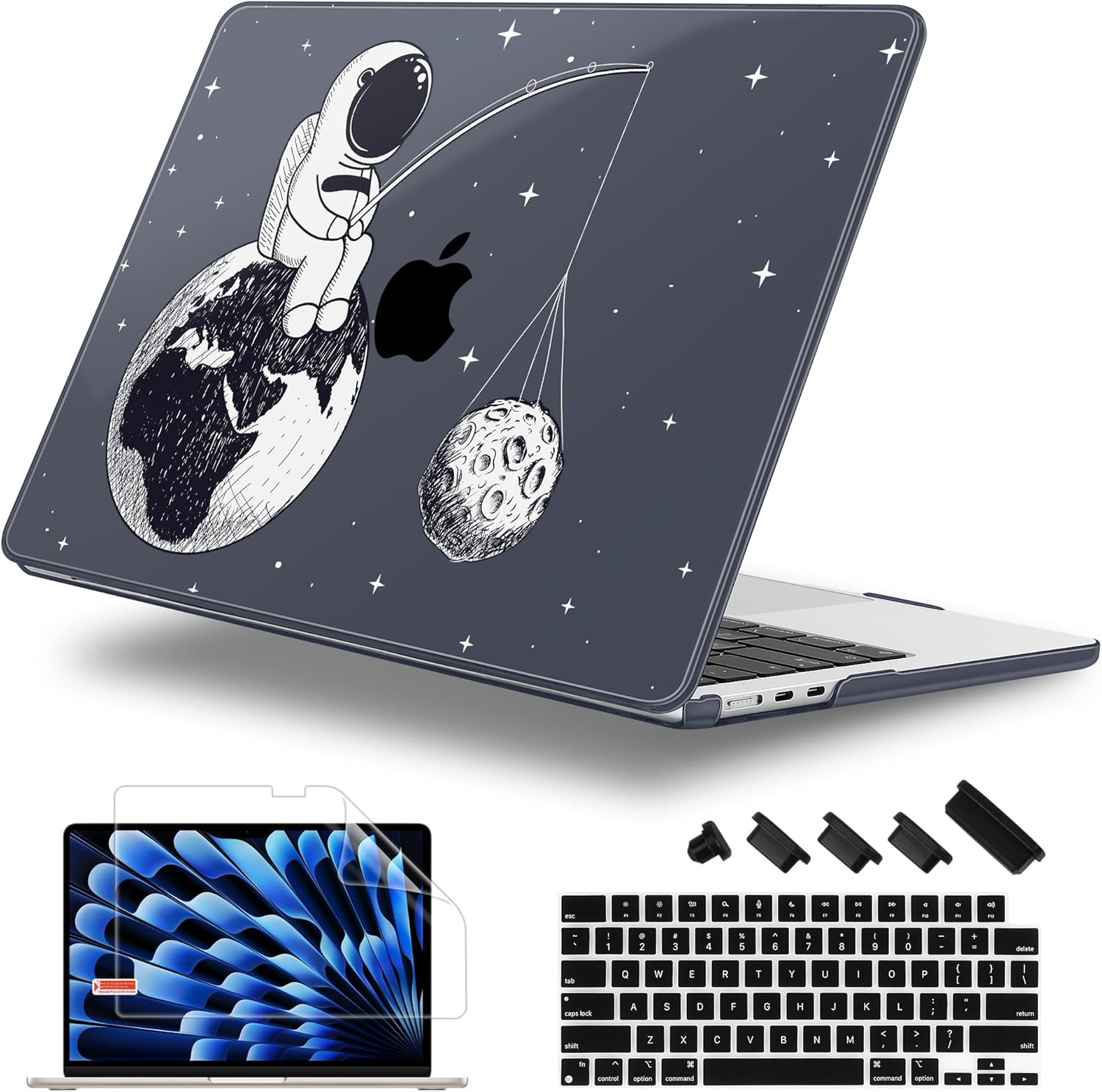 Case for MacBook Air 15 Inch 2025 2024 2023 Release M4 A3241 M3 A3114 M2 A2941, Hard Shell with Screen Protector & Keyboard Cover, Compatible with Touch ID - Astronaut Enjoy